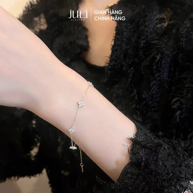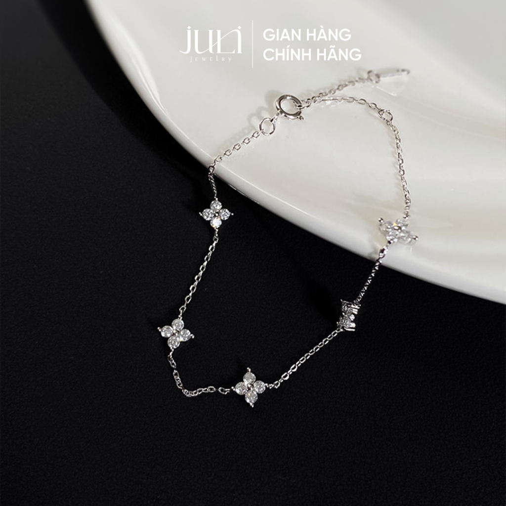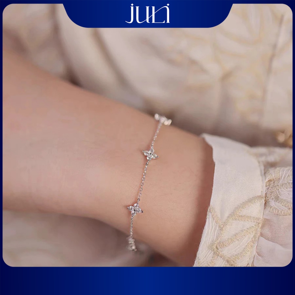 Vòng tay nữ cỏ 4 lá nhí đính Kim Cương sáng lấp lánh và không hoen gỉ được làm 100%Bạc Ý| LT960 JULI