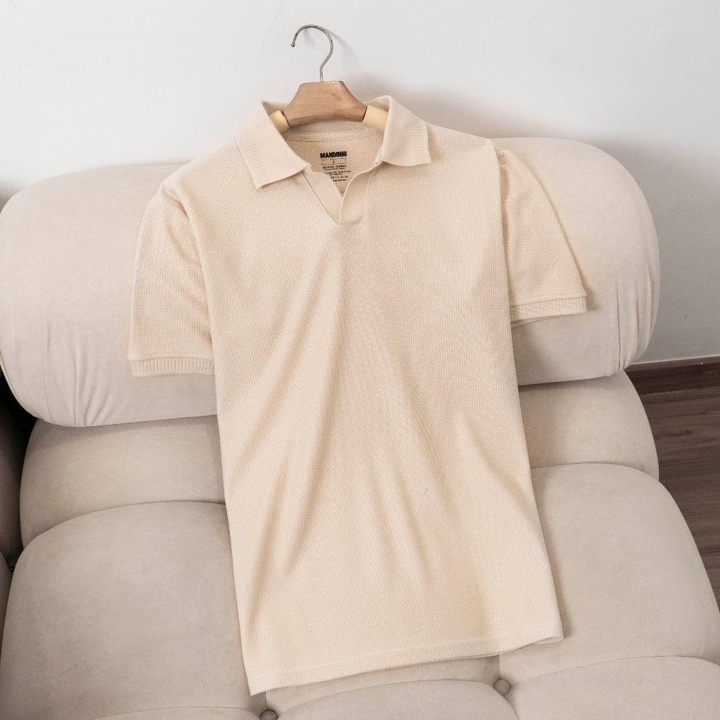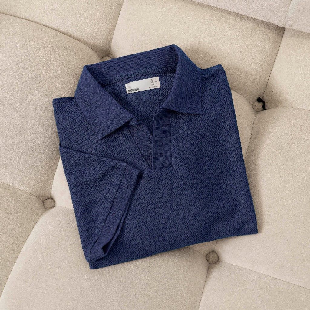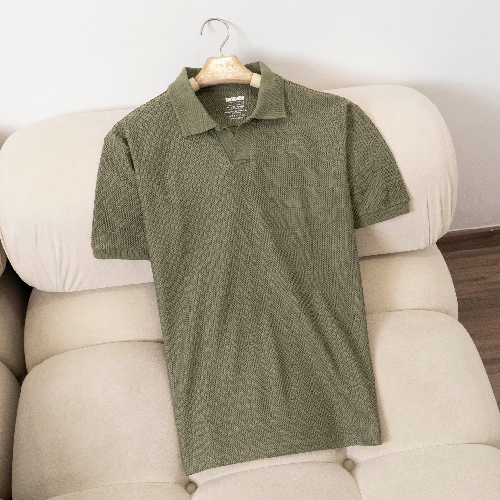 Áo thun polo nam REBO cổ chữ V chất vải dệt họa tiết xương cá cao cấp - MANDINNI