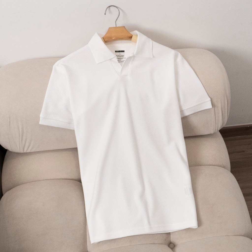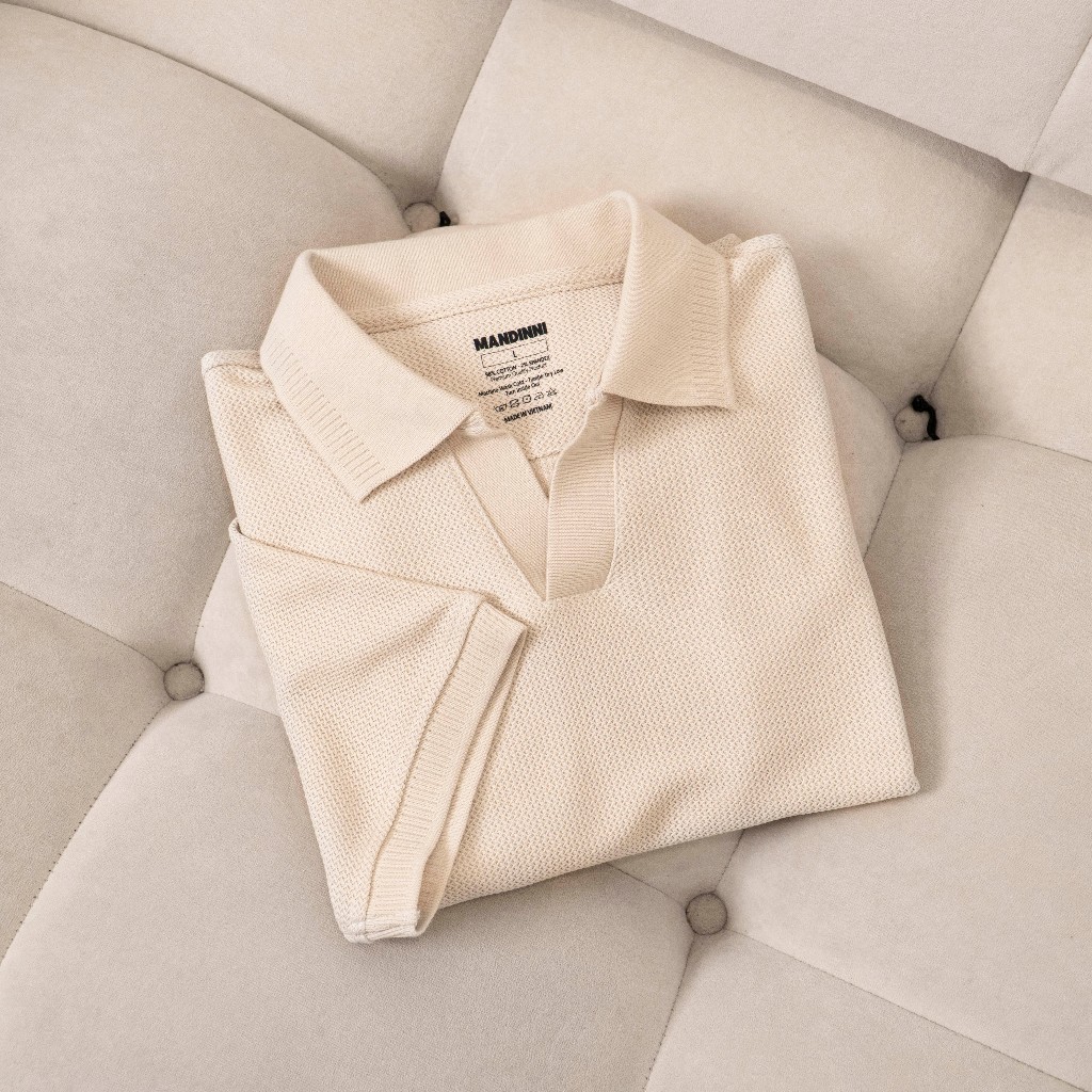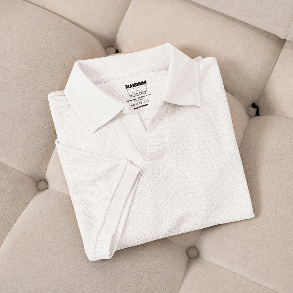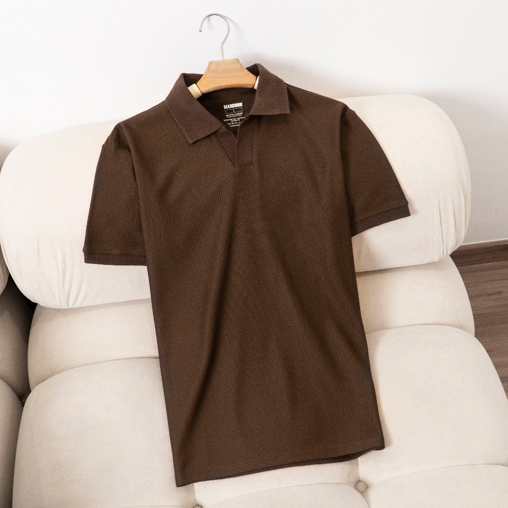 Áo thun polo nam REBO cổ chữ V chất vải dệt họa tiết xương cá cao cấp - MANDINNI