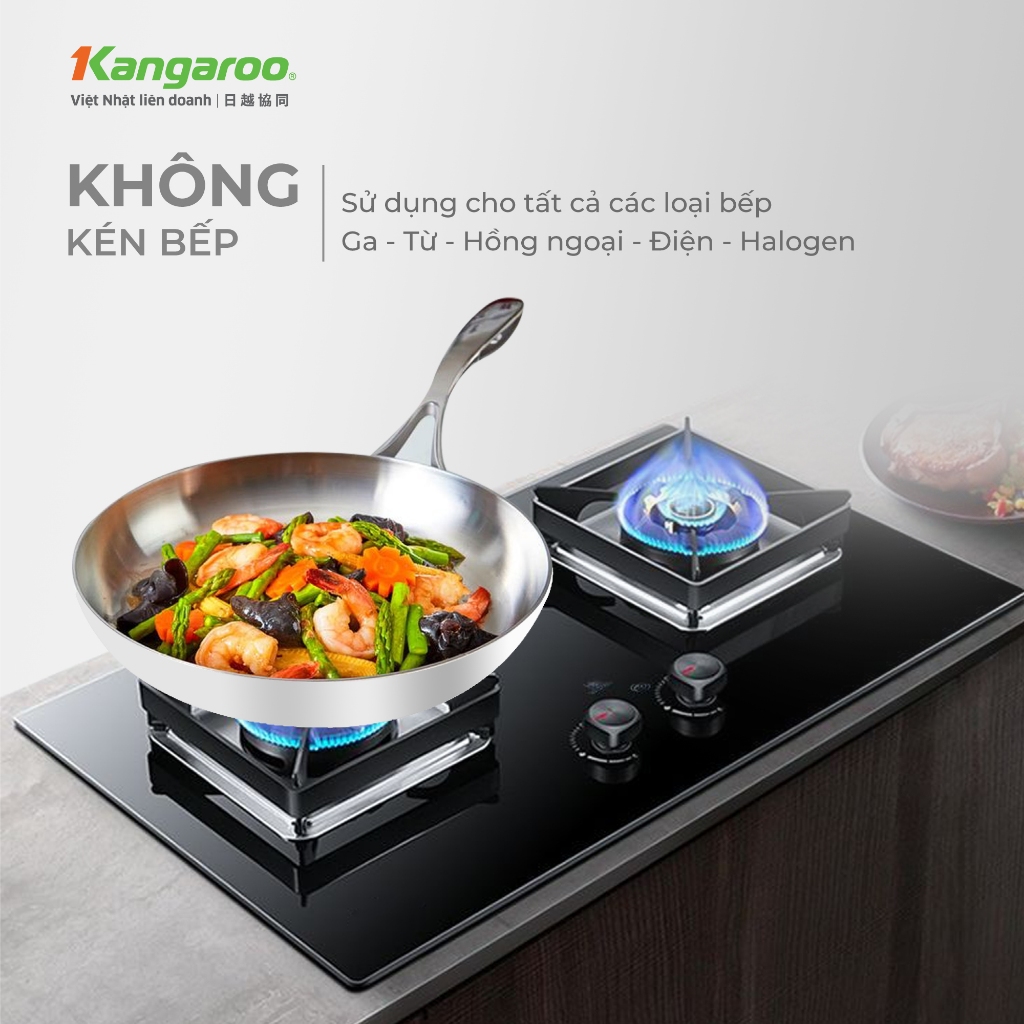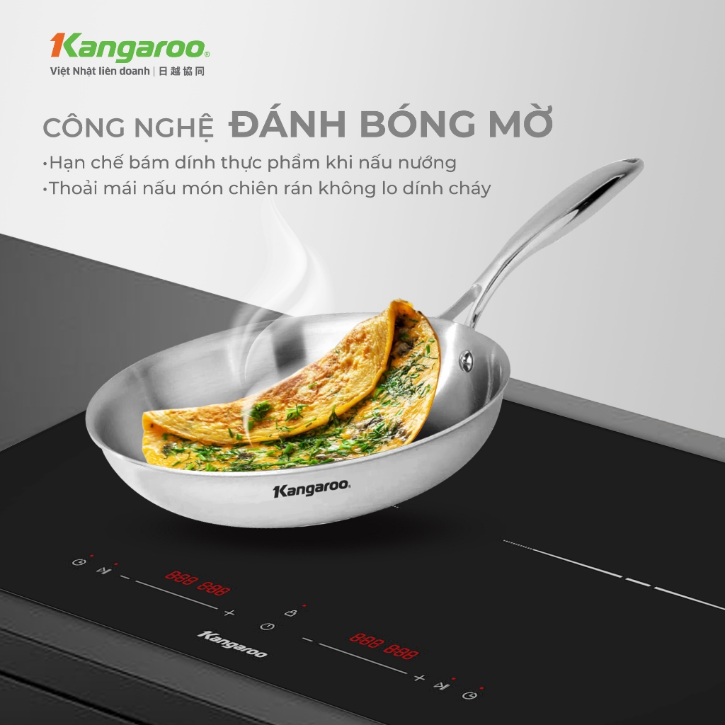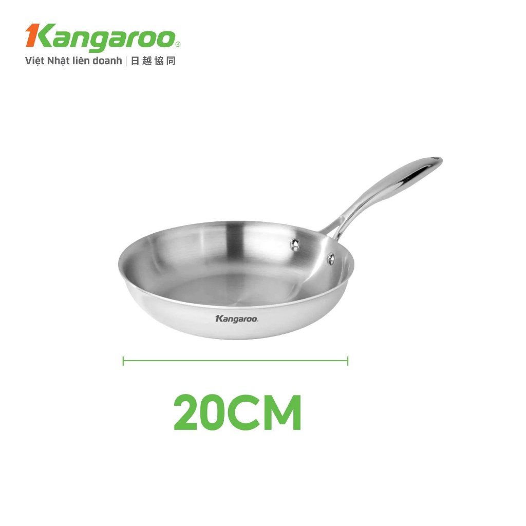 Chảo Inox liền khối đa lớp chống dính tự thân Kangaroo KGFPD1NE kích thước 20-24-26cm - Inox 304