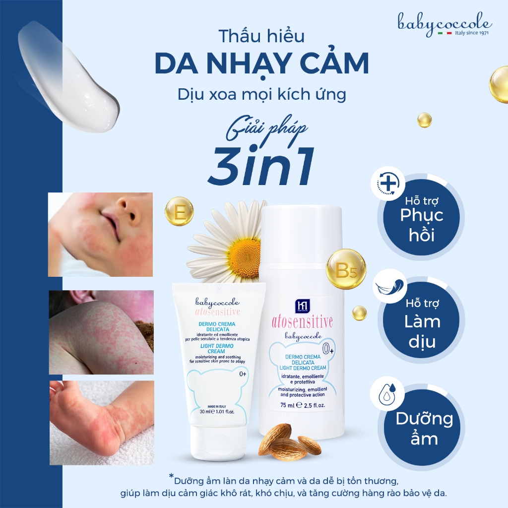 Kem làm dịu da chuyên biệt cho bé Babycoccole 0M+ phục hồi da nhạy cảm với 5% B5+ 30ml/75ml