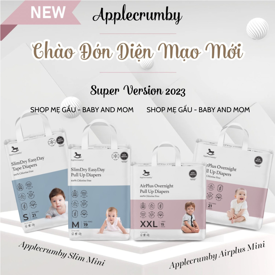 [CHÍNH HÃNG] Bỉm dán/quần ngày và đêm APPLECRUMBY Malaysia cao cấp cho bé