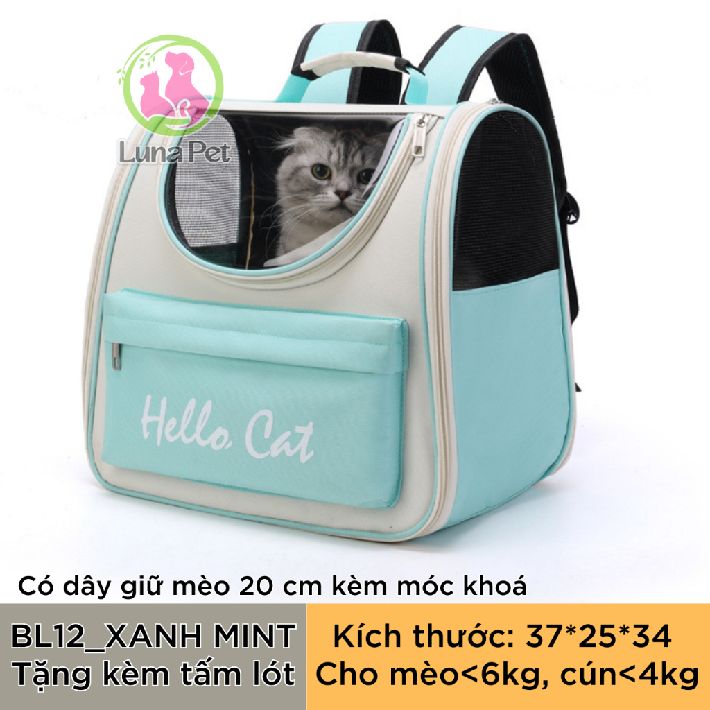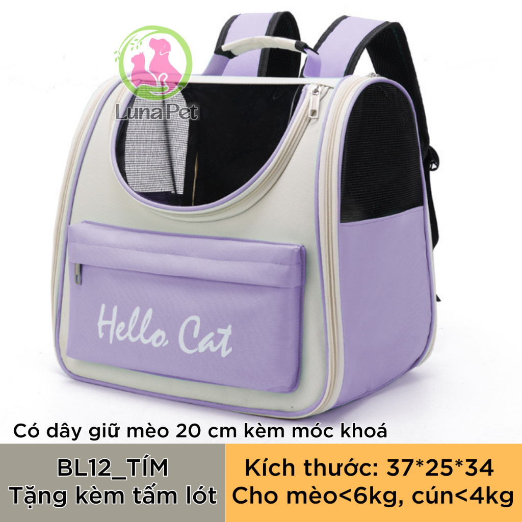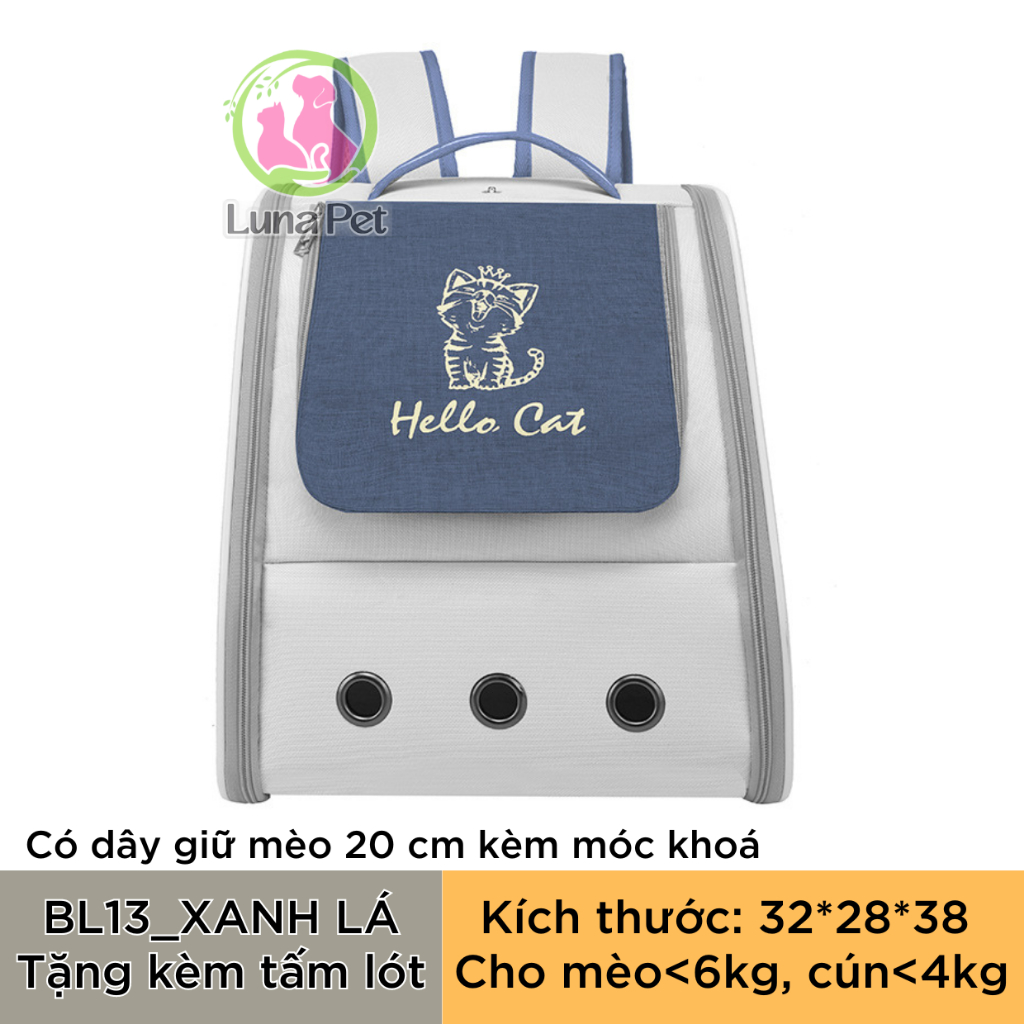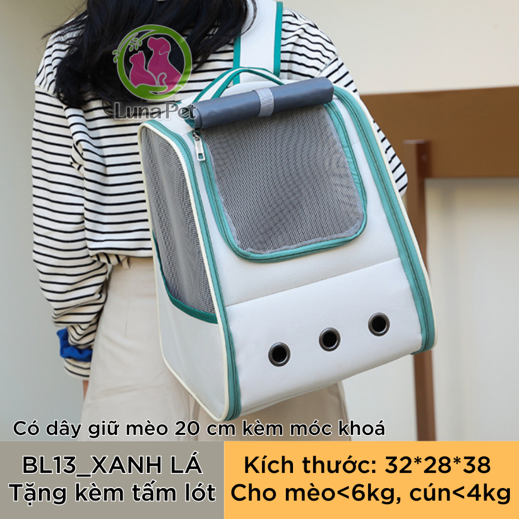 Balo cho mèo chó lớn Luna Pet BL13 - Balo vận chuyển thú cưng có rèm che nắng