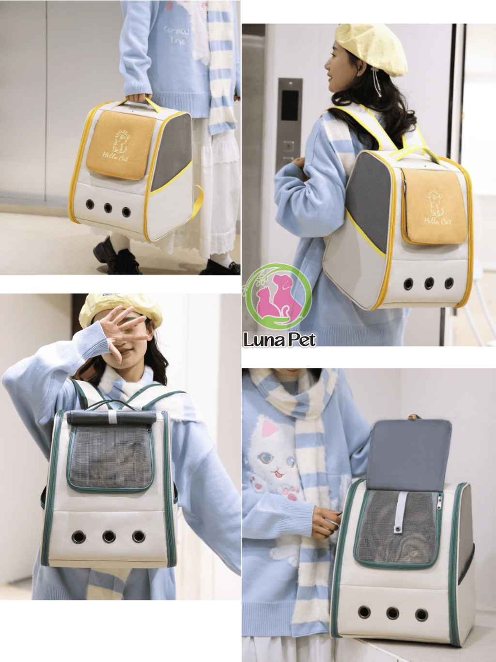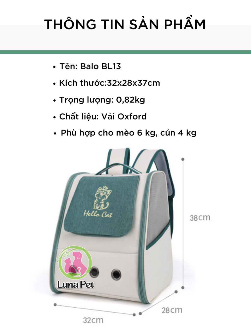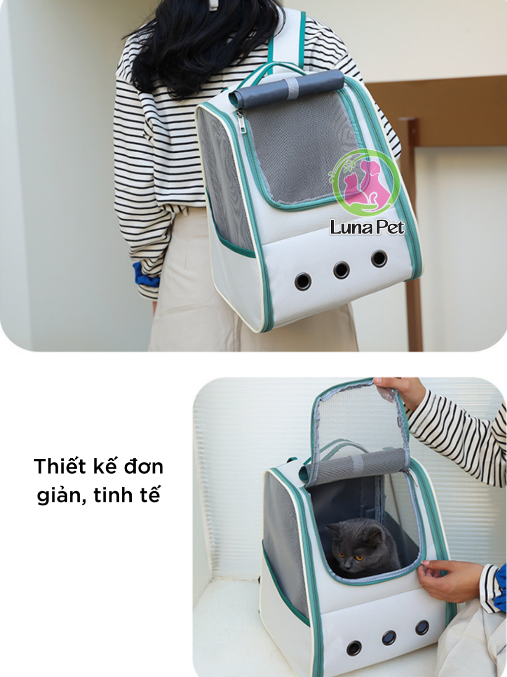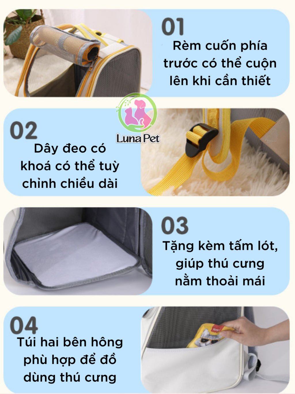 Balo cho mèo chó lớn Luna Pet BL13 - Balo vận chuyển thú cưng có rèm che nắng