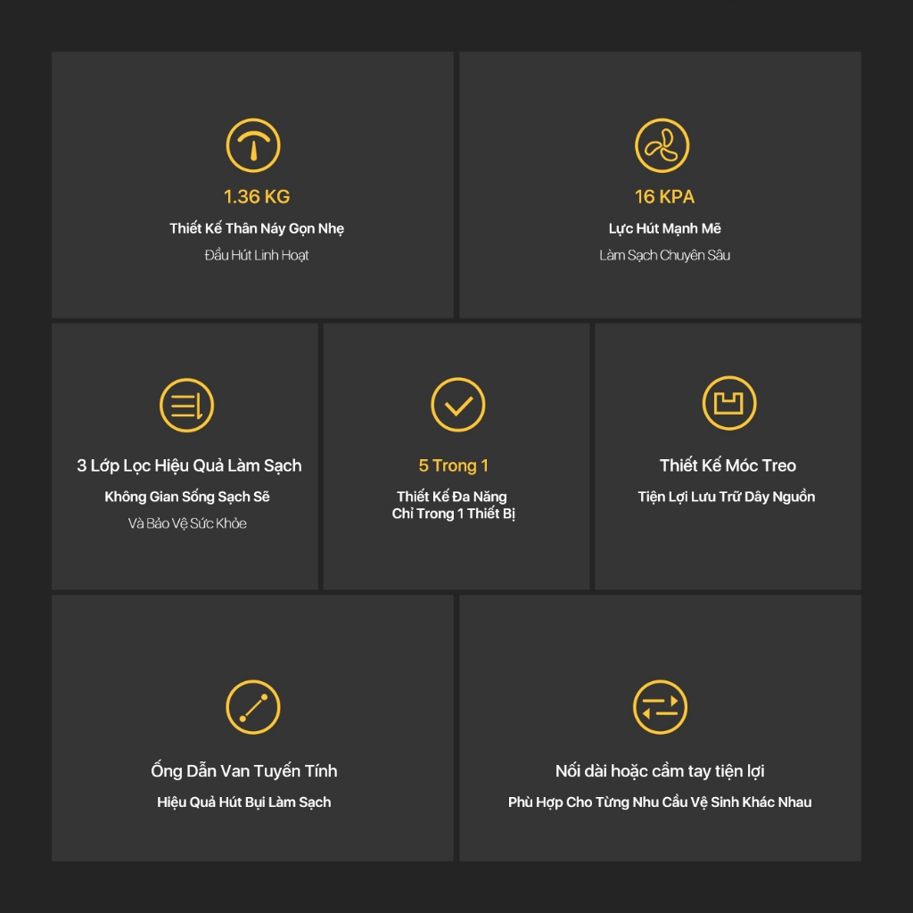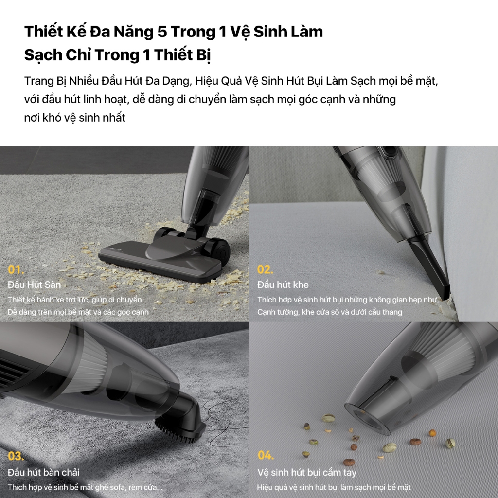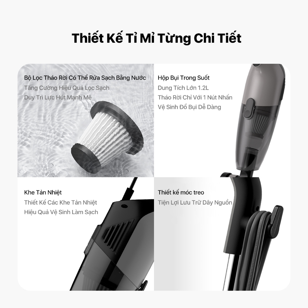 Máy hút bụi cầm tay Deerma DX120C đen lực hút 16000pa, công suất 600W phiên bản mới 2025 - Bảo hành 12 tháng