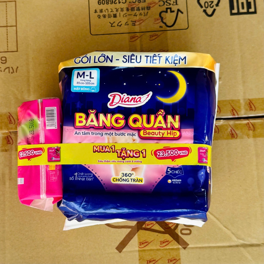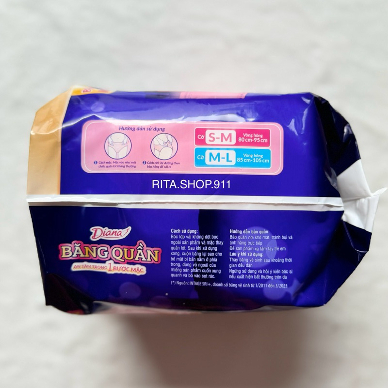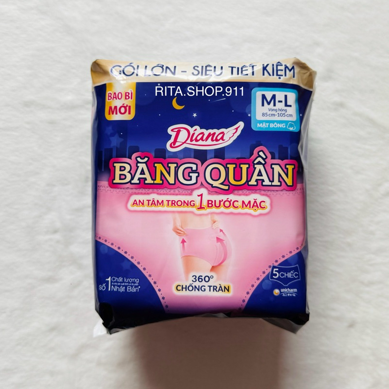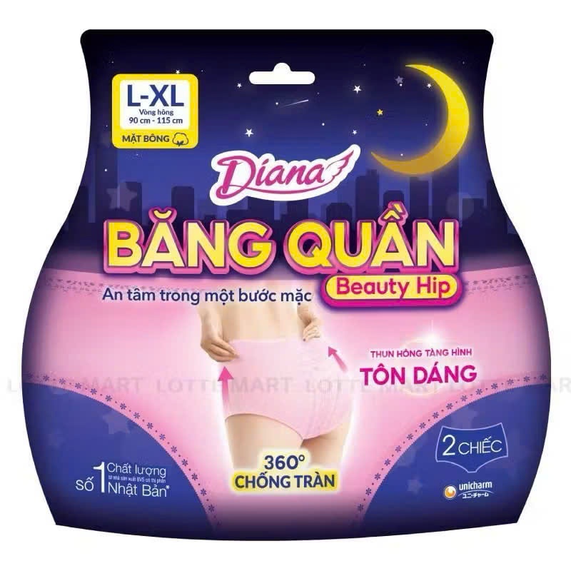 Băng Vệ Sinh Ban Đêm Dạng Quần Diana Beauty Hip Sensi 360 Độ Chống Tràn Size M-L 12 Miếng