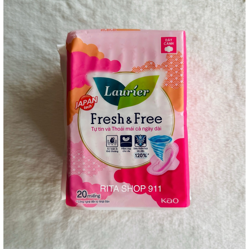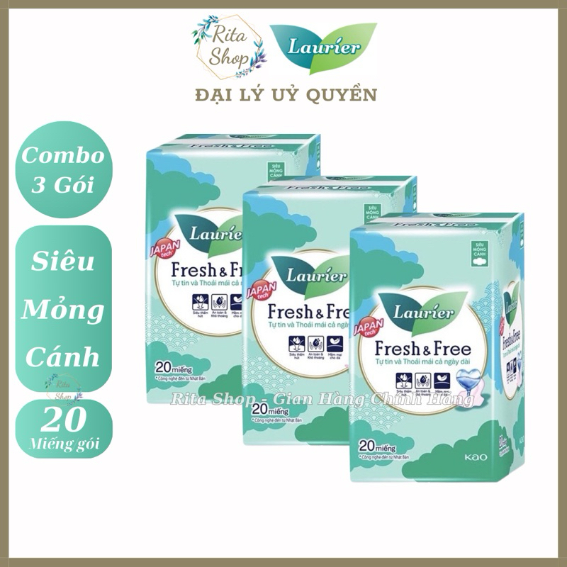 [COMBO 3 GÓI BVS] Băng Vệ Sinh Laurier Fresh & Free Ban Ngày Siêu Mỏng Cánh 22cm 20 Miếng
