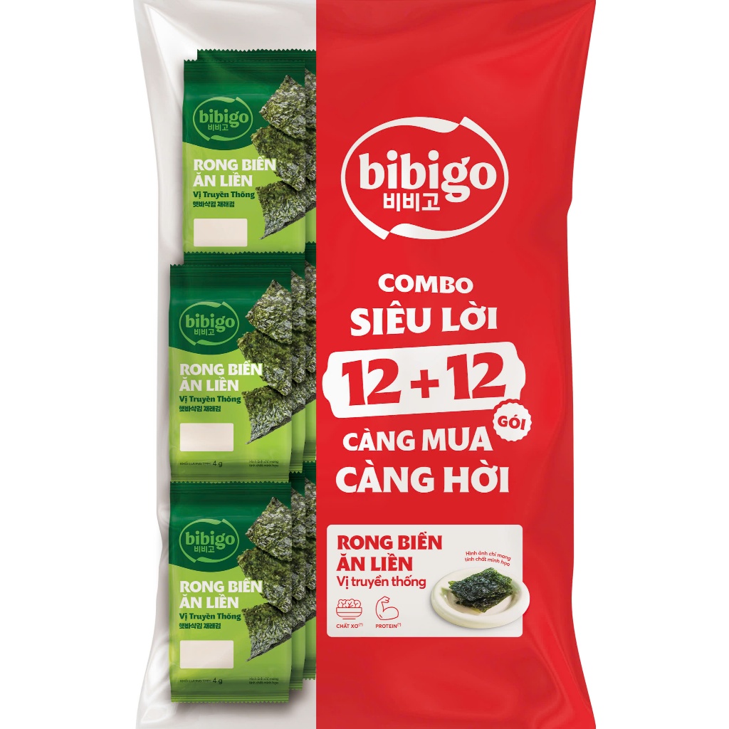 [Tiết kiệm] Túi 24 gói Rong biển ăn liền lá kim truyền thống BiBiGo ( 1 túi = 24 gói)