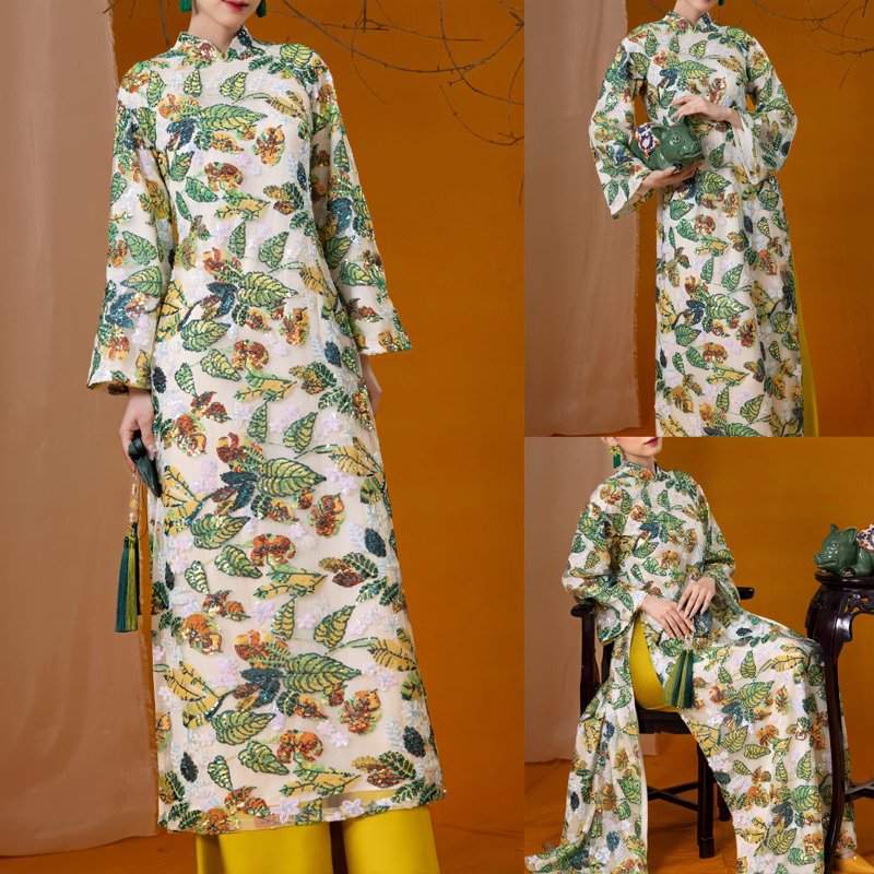 [HOẢ TỐC 2H, ẢNH THẬT] ÁO DÀI NỮ LƯỚI SEQUIN MÂY KẾT KIM SA HOA MẪU HARIWON 4 TÀ FORM SUÔNG CAO CẤP ĐI TIỆC, CƯỚI HỎI