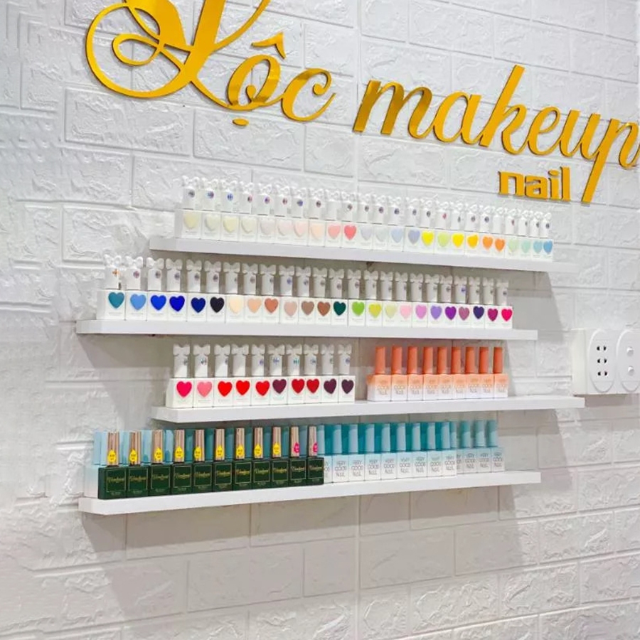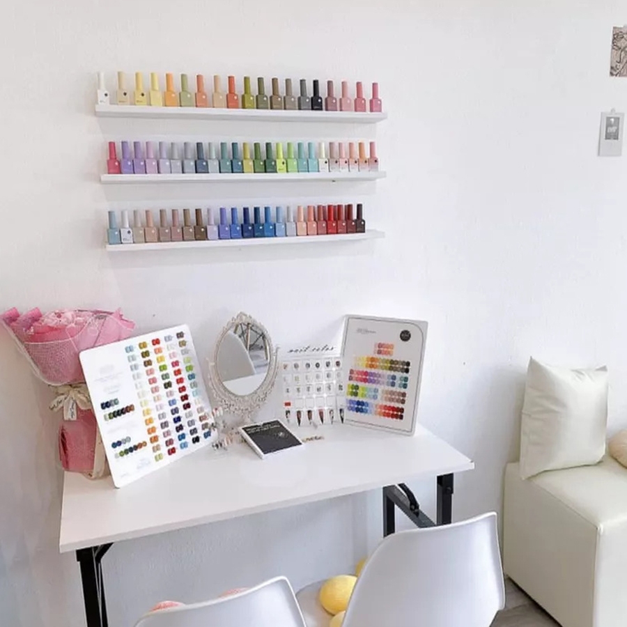 Kệ gắn tường Spa - Tiệm Nail - Kệ Sơn Móng, Đợt gỗ sâu 8cm