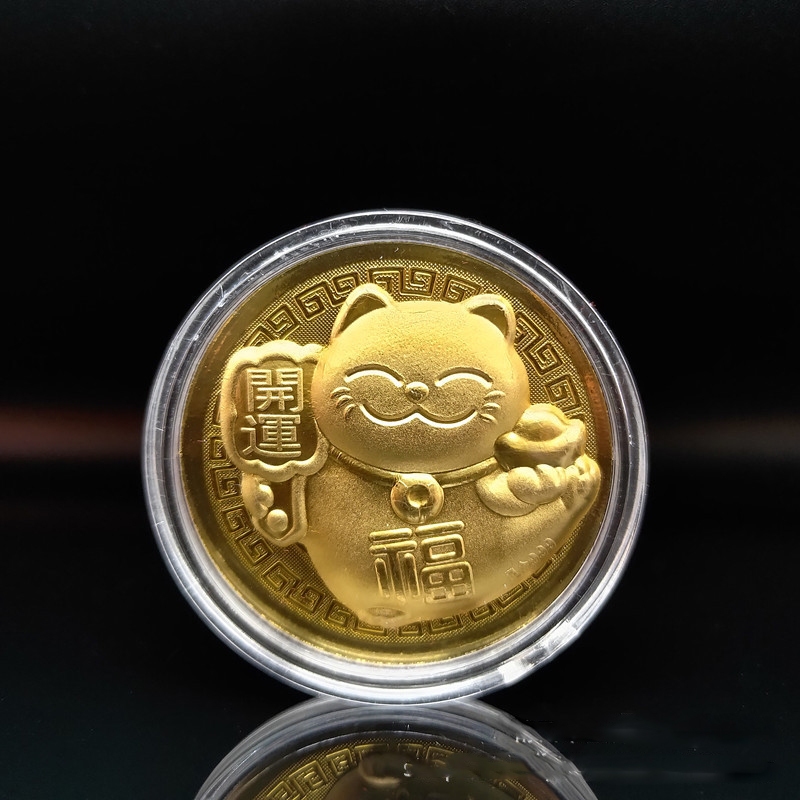 ĐÔNG XU MÈO VÀNG MAY MẮN quà tặng ngày tết may mắn, vật phẩm trang trí phong thuỷ 2026
