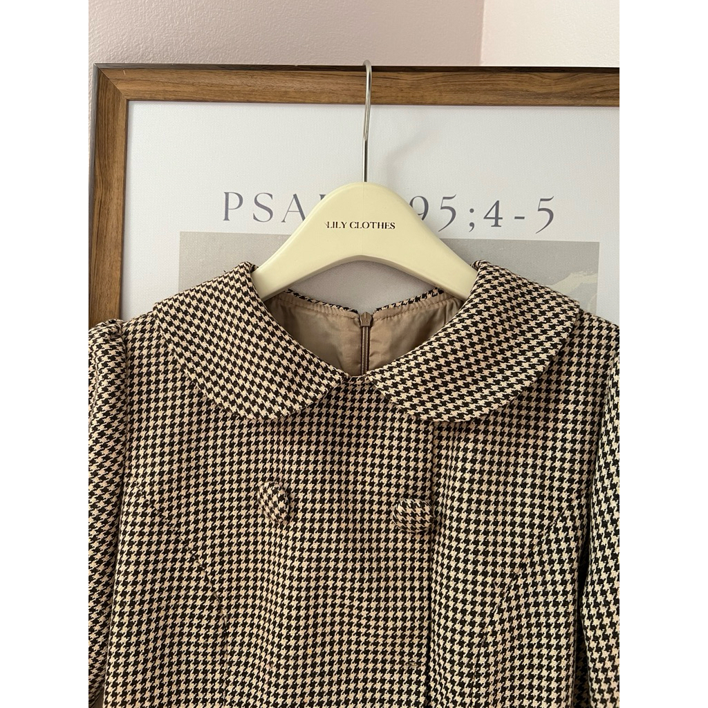 Lily.clothes- (Sẵn) Jisoo Dress- Váy đầm nữ dài tay dáng ngắn cổ sen vải dạ kẻ ziczac khuy bọc nữ tính (V31)