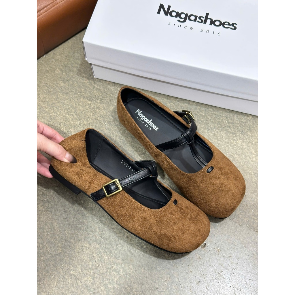 GIÀY BÚP BÊ NAGASHOES MŨI VUÔNG PHỐI DÂY QUAI GÚT NAB126