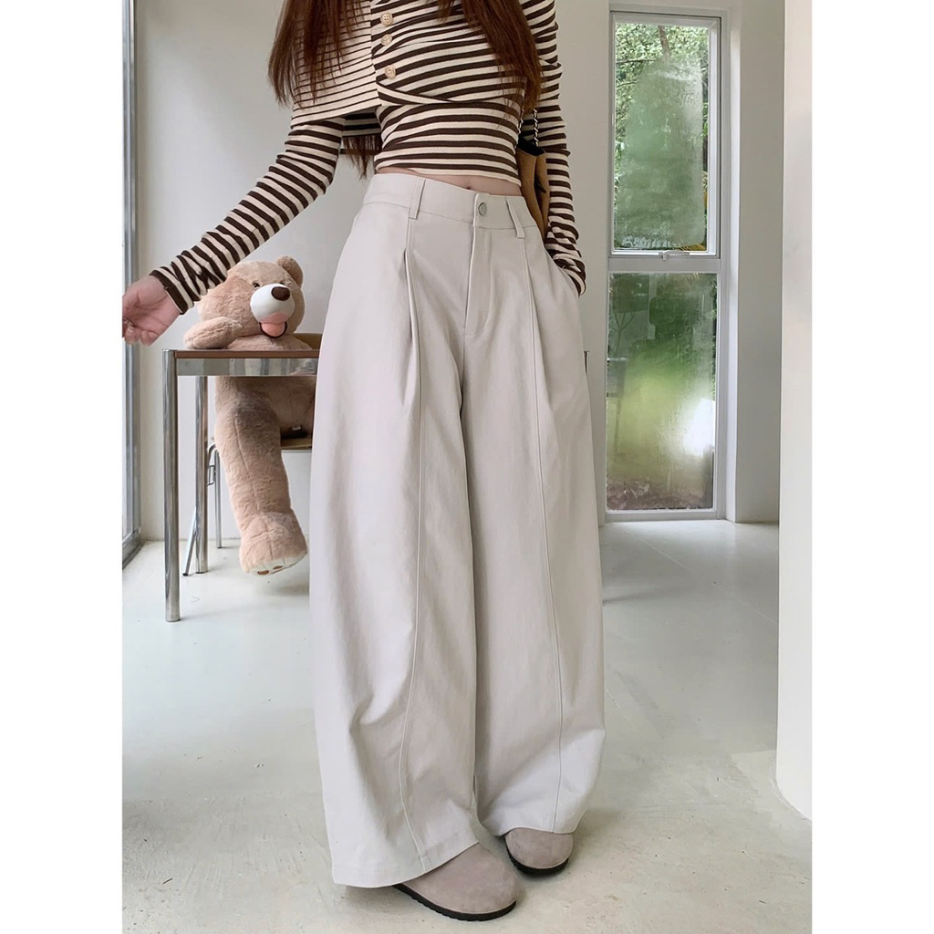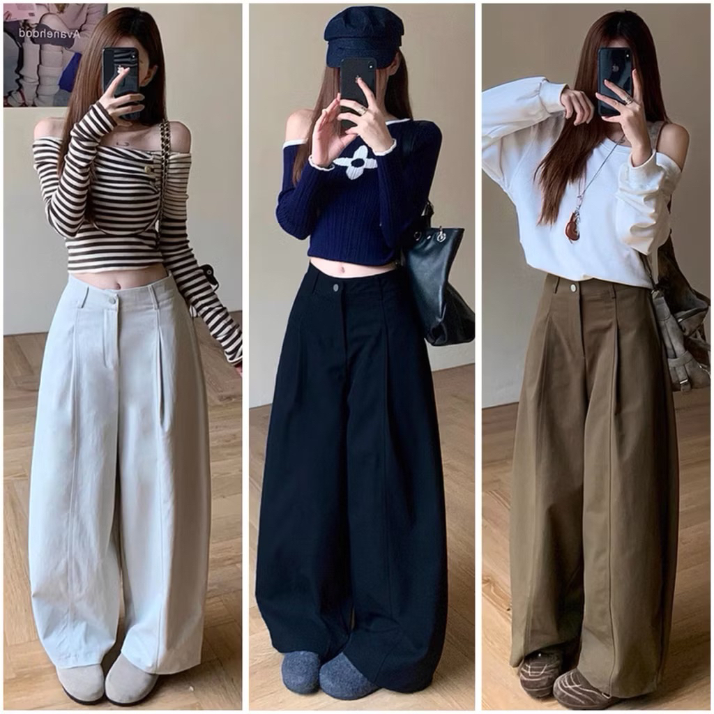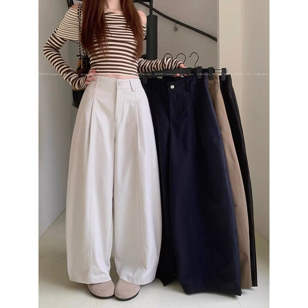 Quần kaki ống rộng chun sau form thụng ống hơi bo, quần suông kaki chun sau phong cách dễ mặc cho nữ