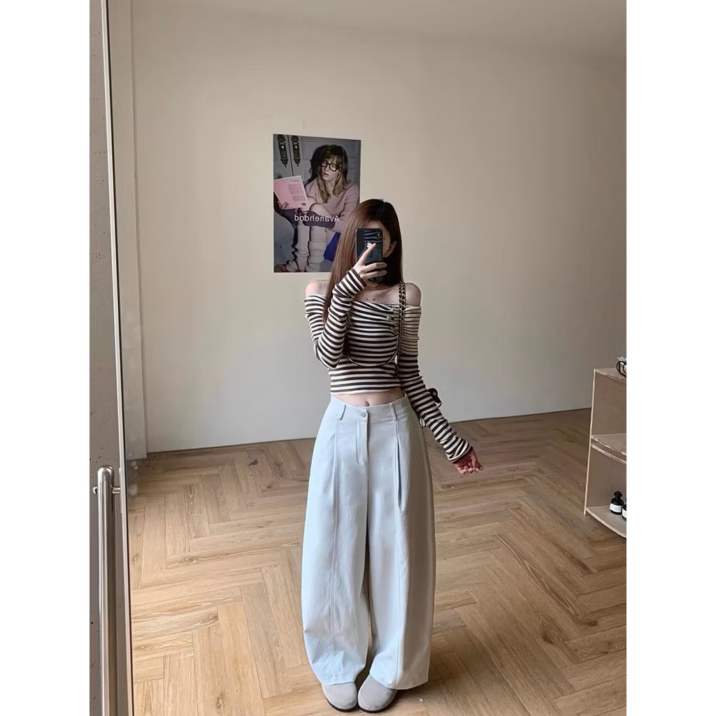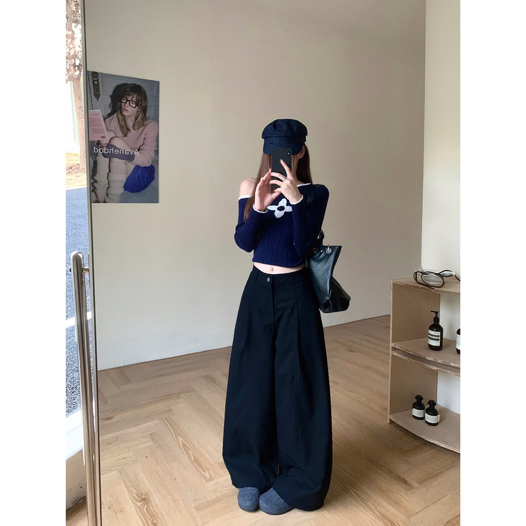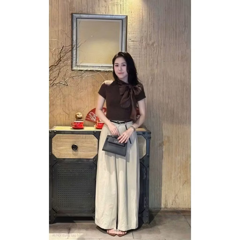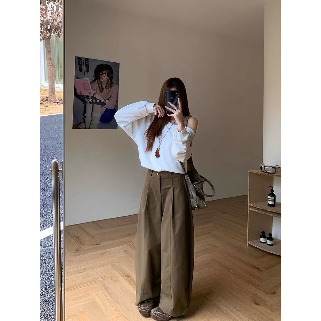 Quần kaki ống rộng chun sau form thụng ống hơi bo, quần suông kaki chun sau phong cách dễ mặc cho nữ