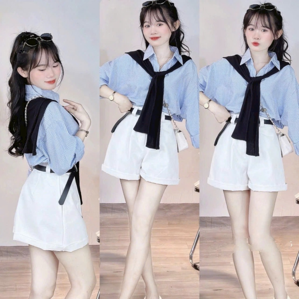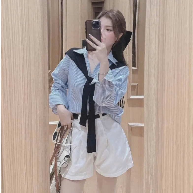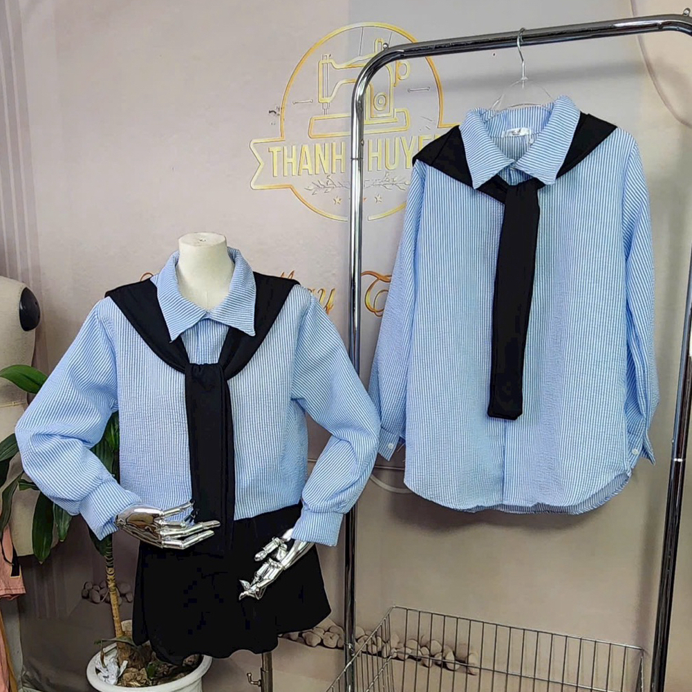 Áo sơ mi nữ from rộng chất đũi mềm mát_kèm khăn