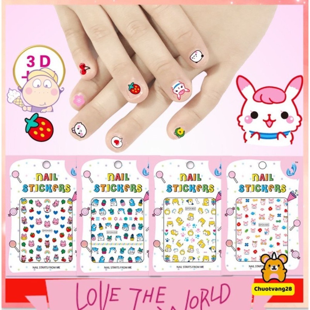 Set 10 miếng sticker dán móng tay 3D dễ thương chống thấm nước an toàn cho bé