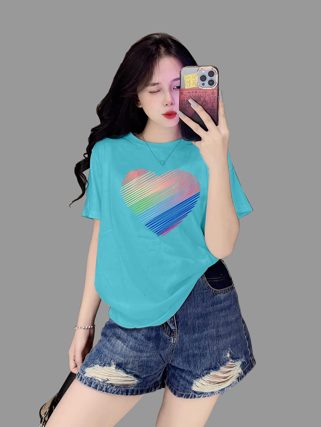 [40~70kg] Áo Thun Thái Nữ Cotton 100% Mềm Mịn Mát [Mã A43] Phong Cách, Cá Tính, Độc Đáo [Tim Sọc]