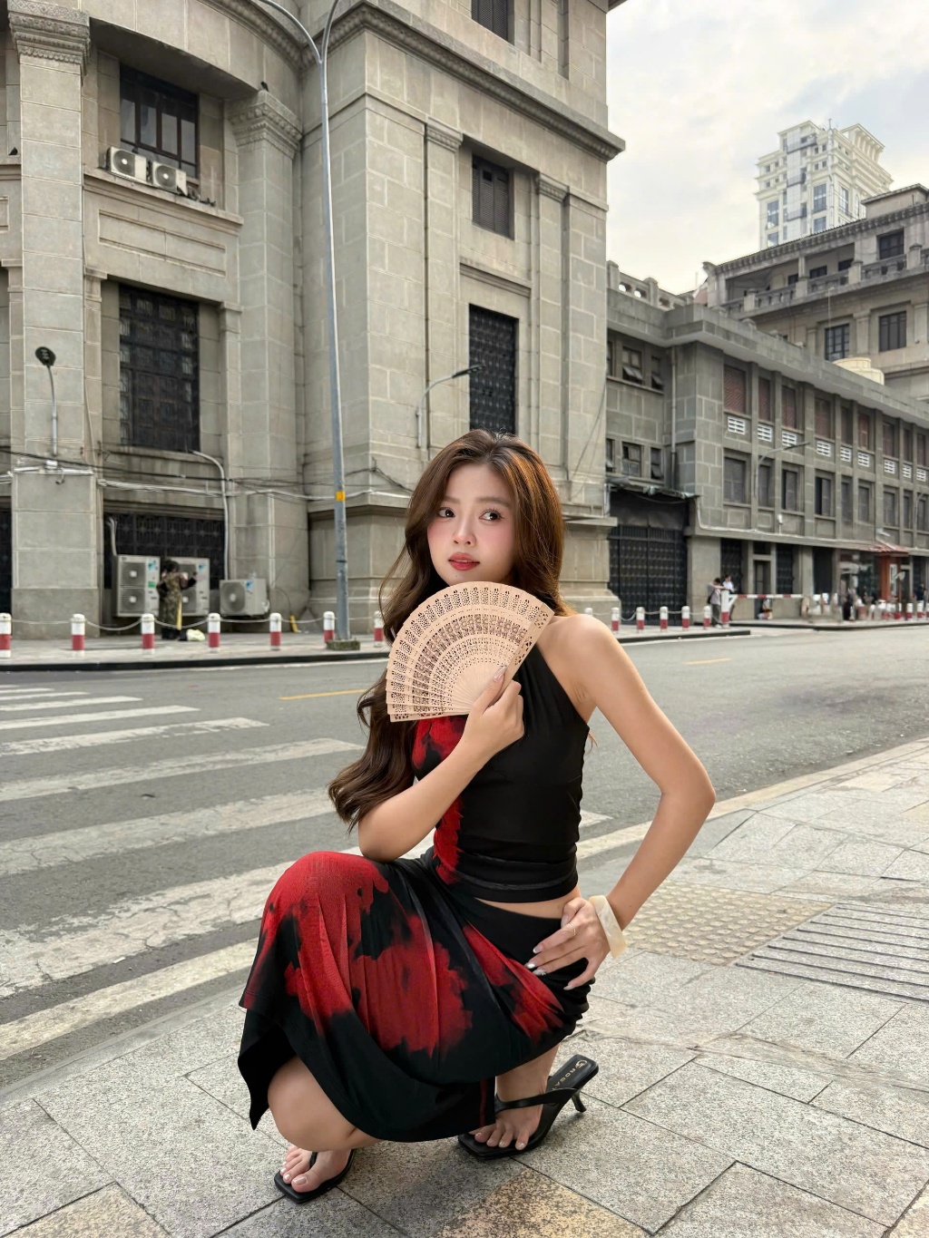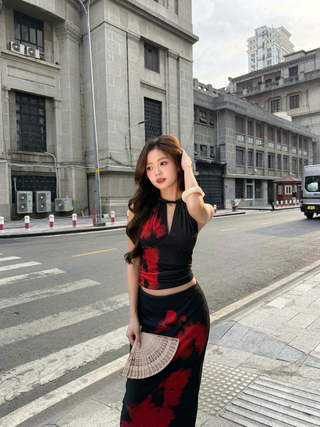 Set Nữ ICHEGO Áo Cổ Yếm, Chân Váy Midi Ôm Sang Chảnh SECODEE