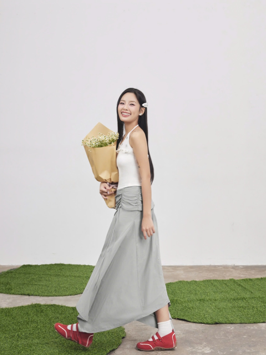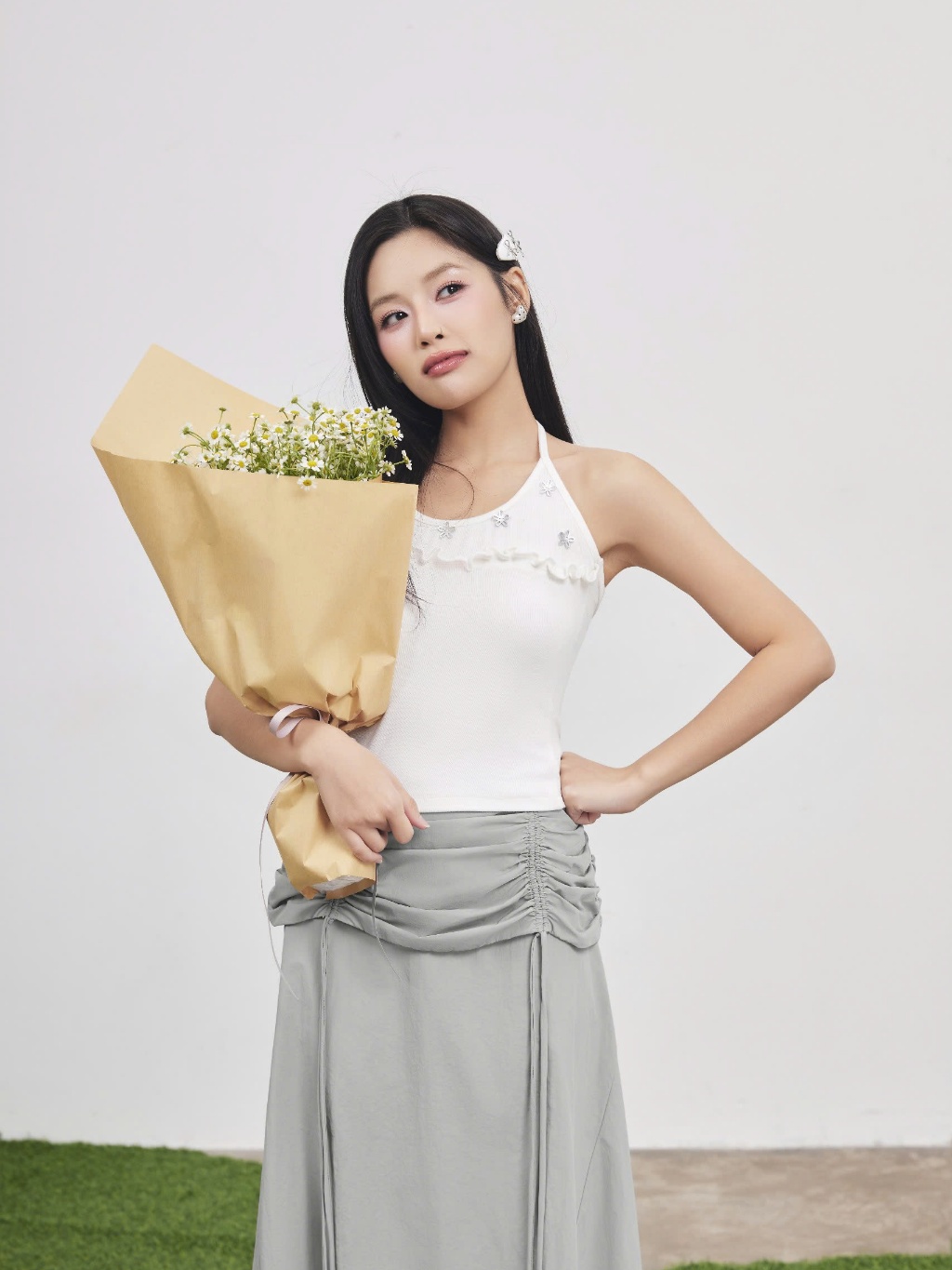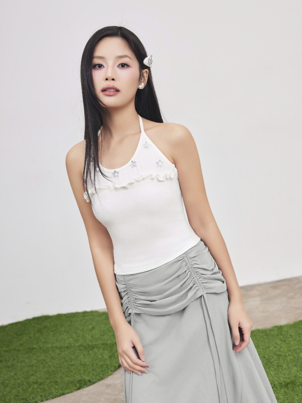 Chân Váy Nữ ALNOP Dáng Dài Phối Nhún Năng Động SECODEE