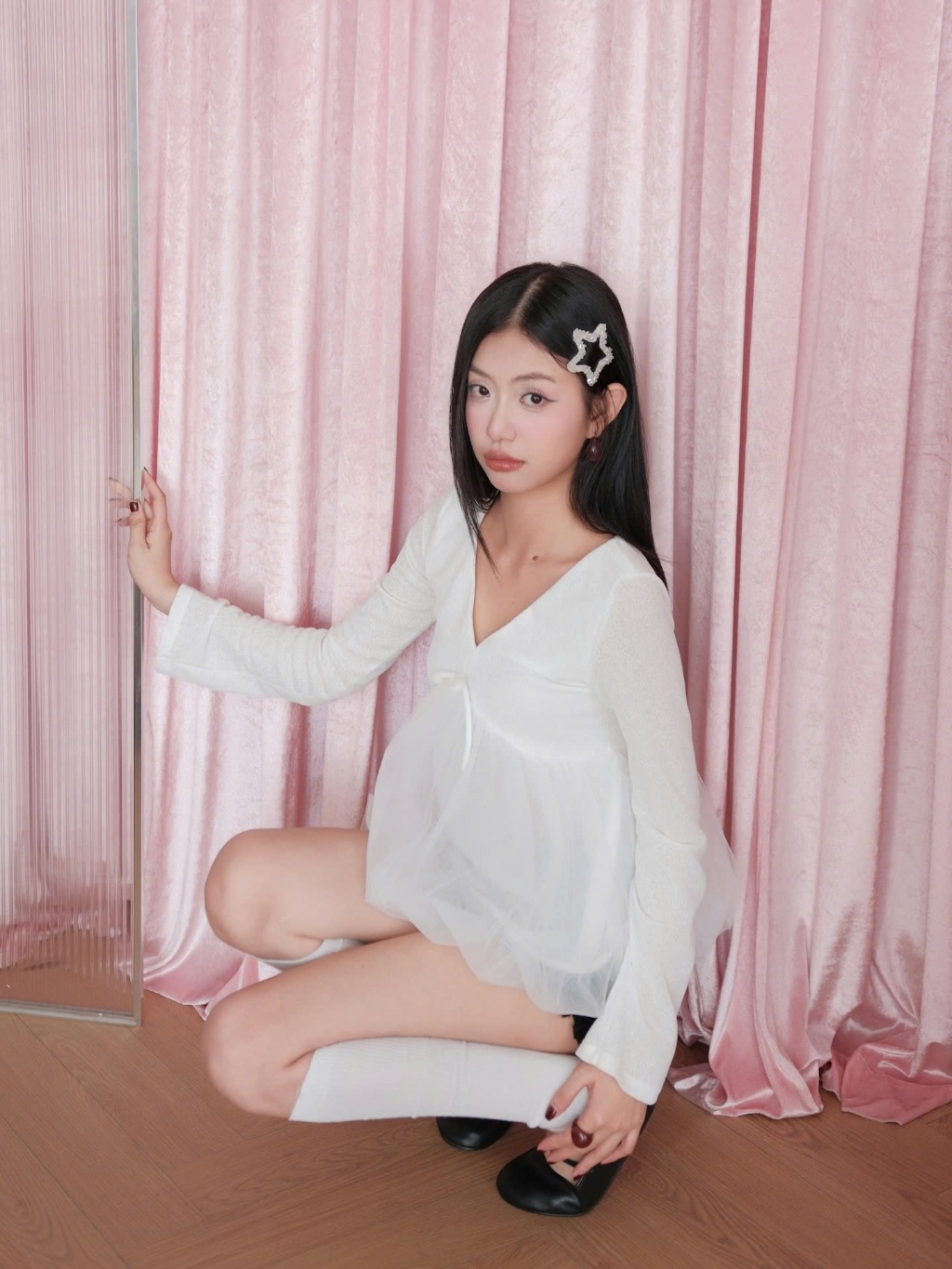 Áo Kiểu Nữ KATZES Tay Dài Cổ V Dáng Bí Dễ Thương SECODEE