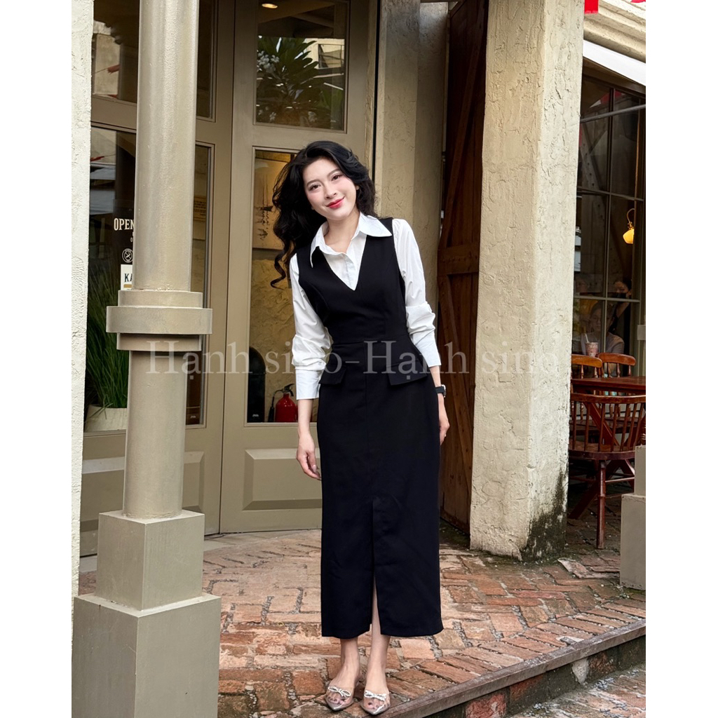 Hạnh sino.97 Set yếm áo somi trắng rách rời dài tay mới