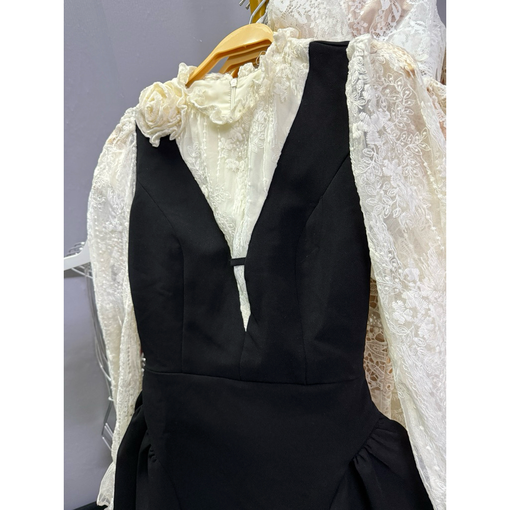 Hạnh sino.97 Váy liền dáng ngắn mix tay ren mềm mới
