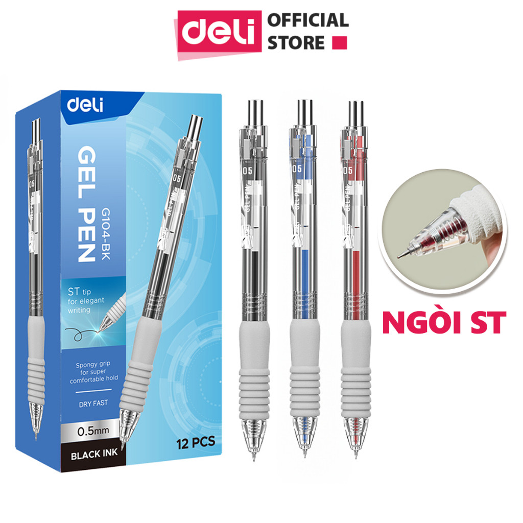[GEL ĐỆM XỐP] Bút Gel Đệm Xốp Deli Ngòi ST 0.5mm Bi Nước Mực Xanh/Đen/Đỏ Viết Trơn Cho Học Sinh Sinh Viên Văn PhòngEG104