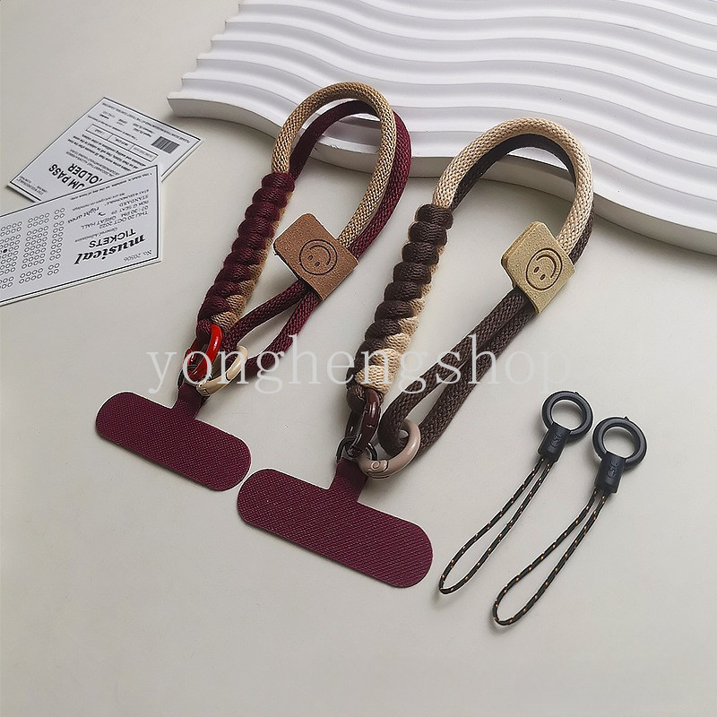 Hợp Thời Trang INS Phong Cách Tương Phản Màu Sắc Dệt Ốp Lưng Điện Thoại Đa Năng Dây Treo Mặt Cười Chống Rơi Đa Năng Điện Thoại Di Động Dây Đeo Tay