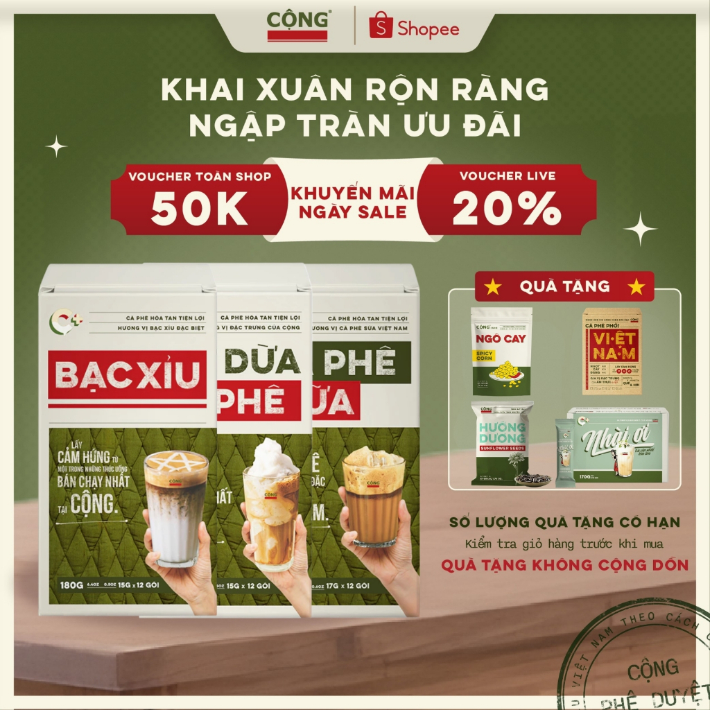 Cà phê hòa tan Cộng Cà Phê combo 3 hộp: Bạc xỉu, cốt dừa, cà phê sữa tiện lợi vị như tại quán