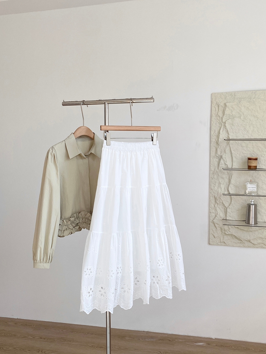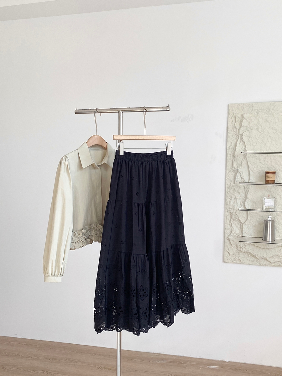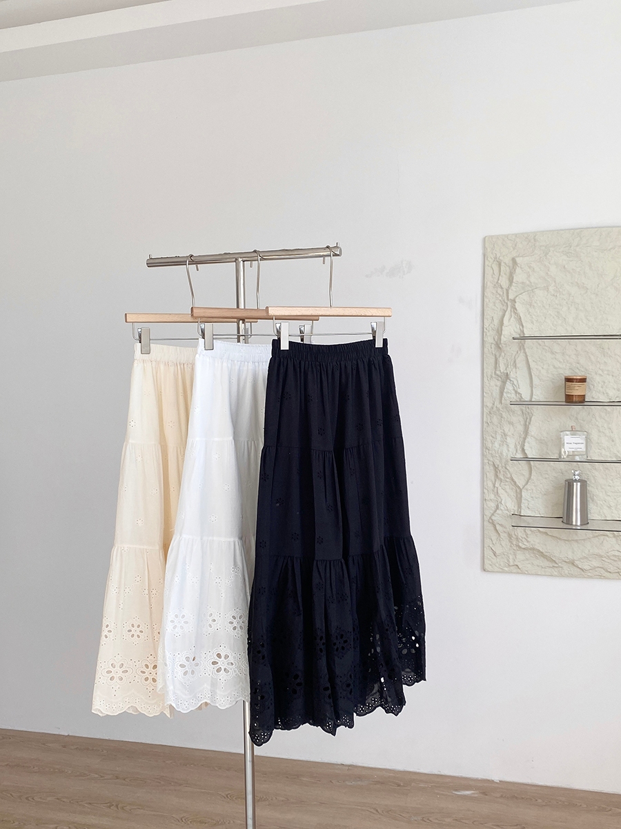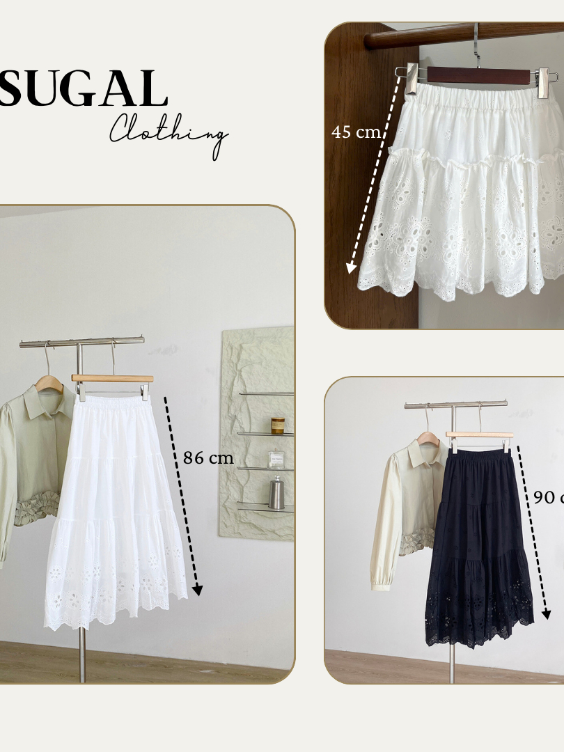 SUGAL - [HÀNG LOẠI 1] Chân Váy Midi Dáng Dài Hai Lớp Cạp Chun Chất Vải Thô Boi Thêu Hoa | CV NU 075V2