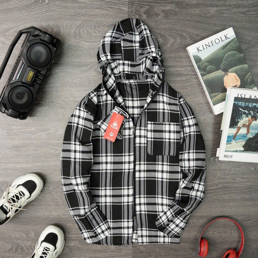 Áo khoác chống nắng nam nữ Form rộng chất vải dạ cotton kẻ caro dày dặn- tongkhohungcuong