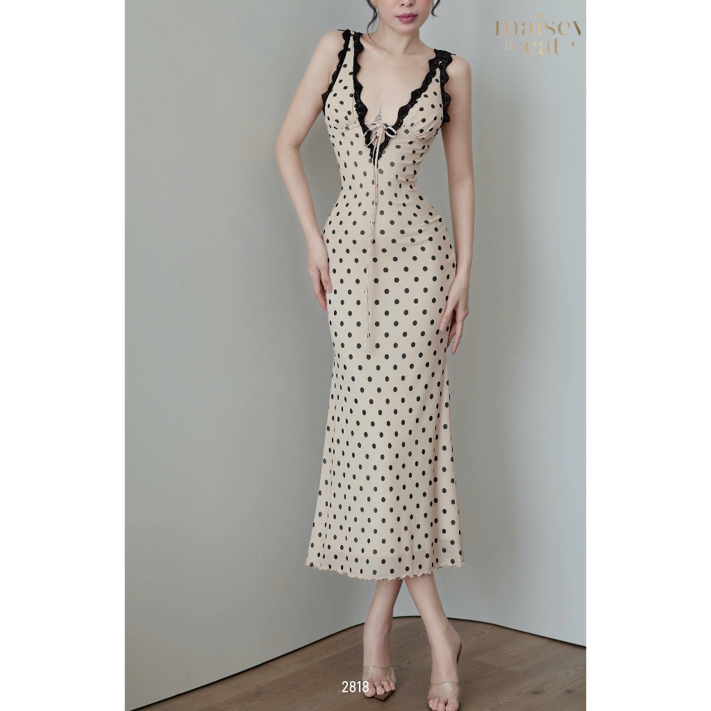 [MAISEY 2818] Đầm body phối ren cổ chữ V quyến rũ – dự tiệc, đi chơi, sang chảnh có mút ngực