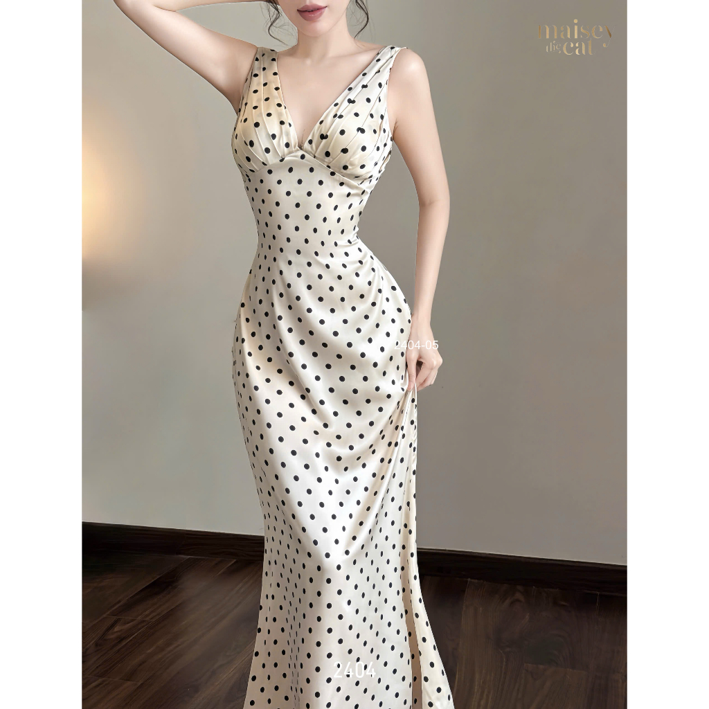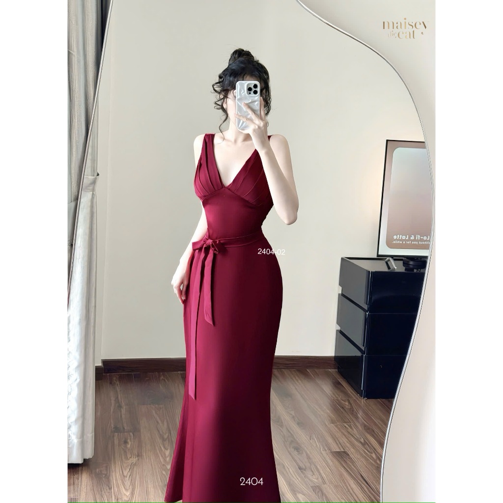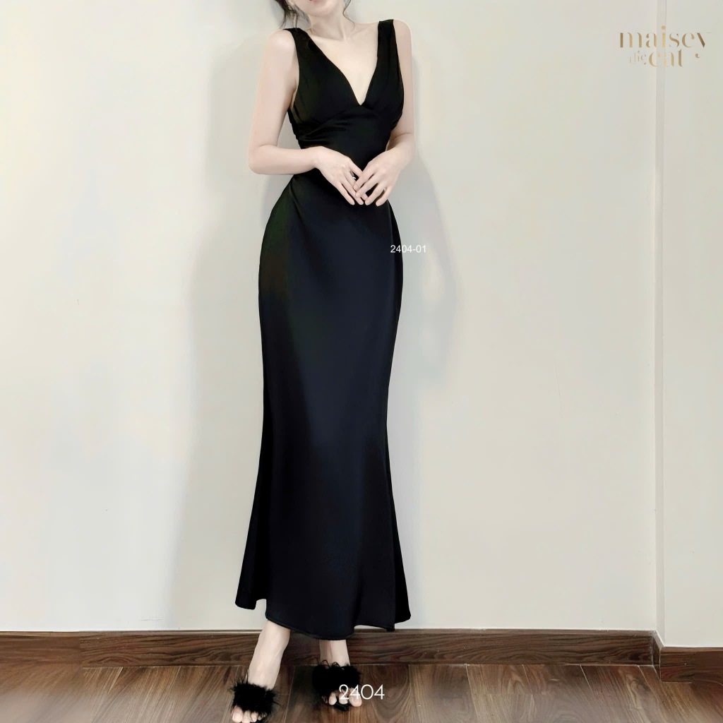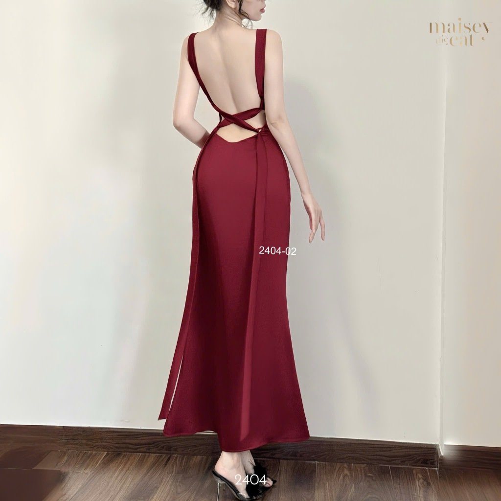 [MAISEY 2404] Đầm lụa hở lưng xếp ly ngực – Váy maxi sexy sang trọng đi tiệc và du lịch biển
