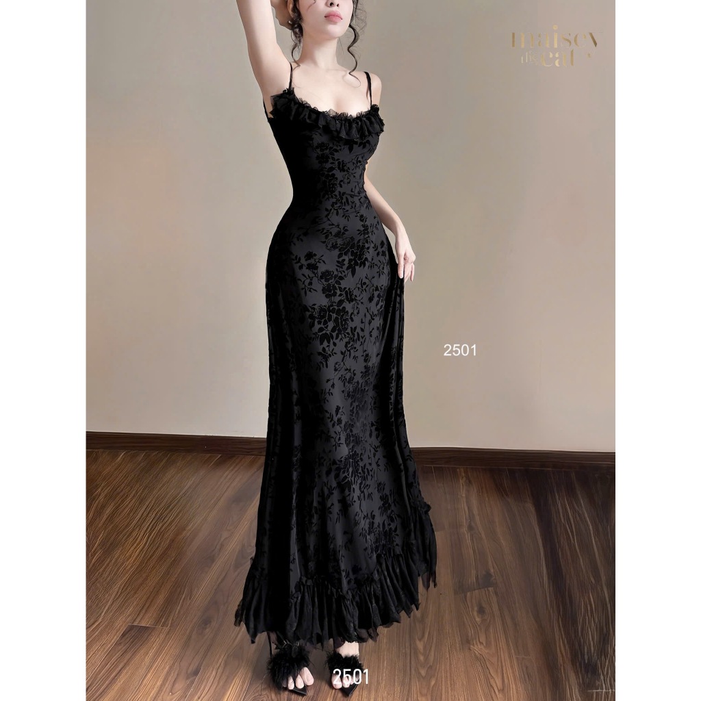 [MAISEY 2501] Đầm maxi vintage ren hoa ôm dáng tùng xoè – thun ren + ren hoa cao cấp + lót mềm