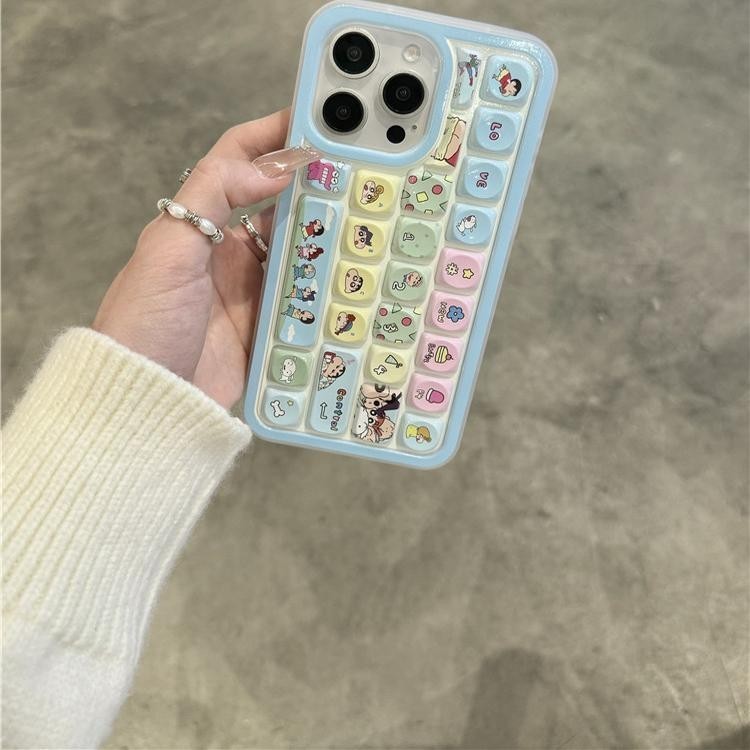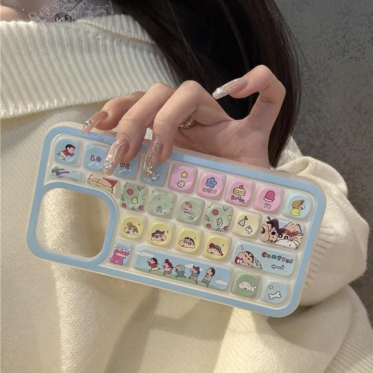 Mới Ins Bàn Phím Màu Xanh Dễ Thương Crayon Shin-chan Họa Tiết Bàn Phím Ốp Lưng Điện Thoại Chống Rơi Cho iPhone 16 Promax 15 Promax 11 12 13 Mini 14plus 11 Pro Max X XS XR XS Max 78 7Plus