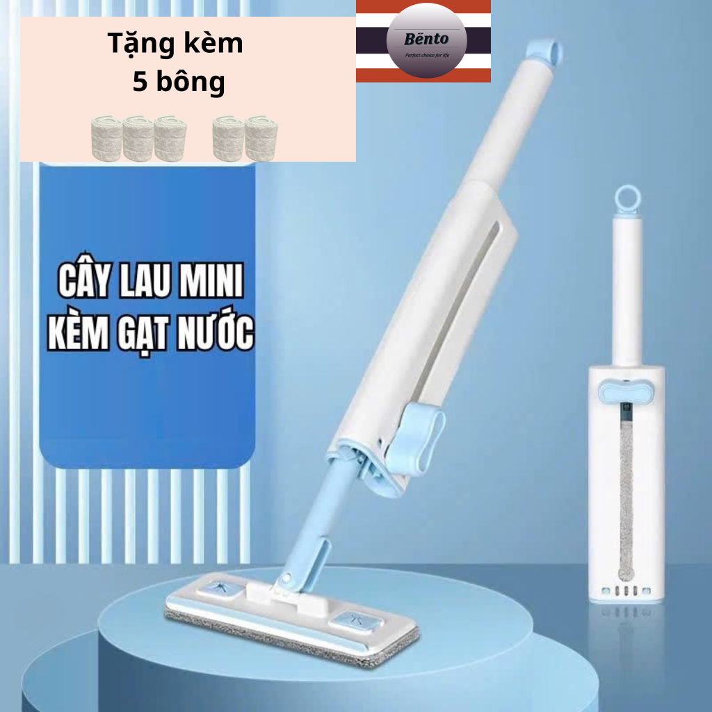 Bentomop (tặng thêm 4/3/2 bông lau+ 1 móc treo/1 cây )Cây lau tự vắt Mini lau bếp, kính,gạt nước - bông thấm hút tốt.