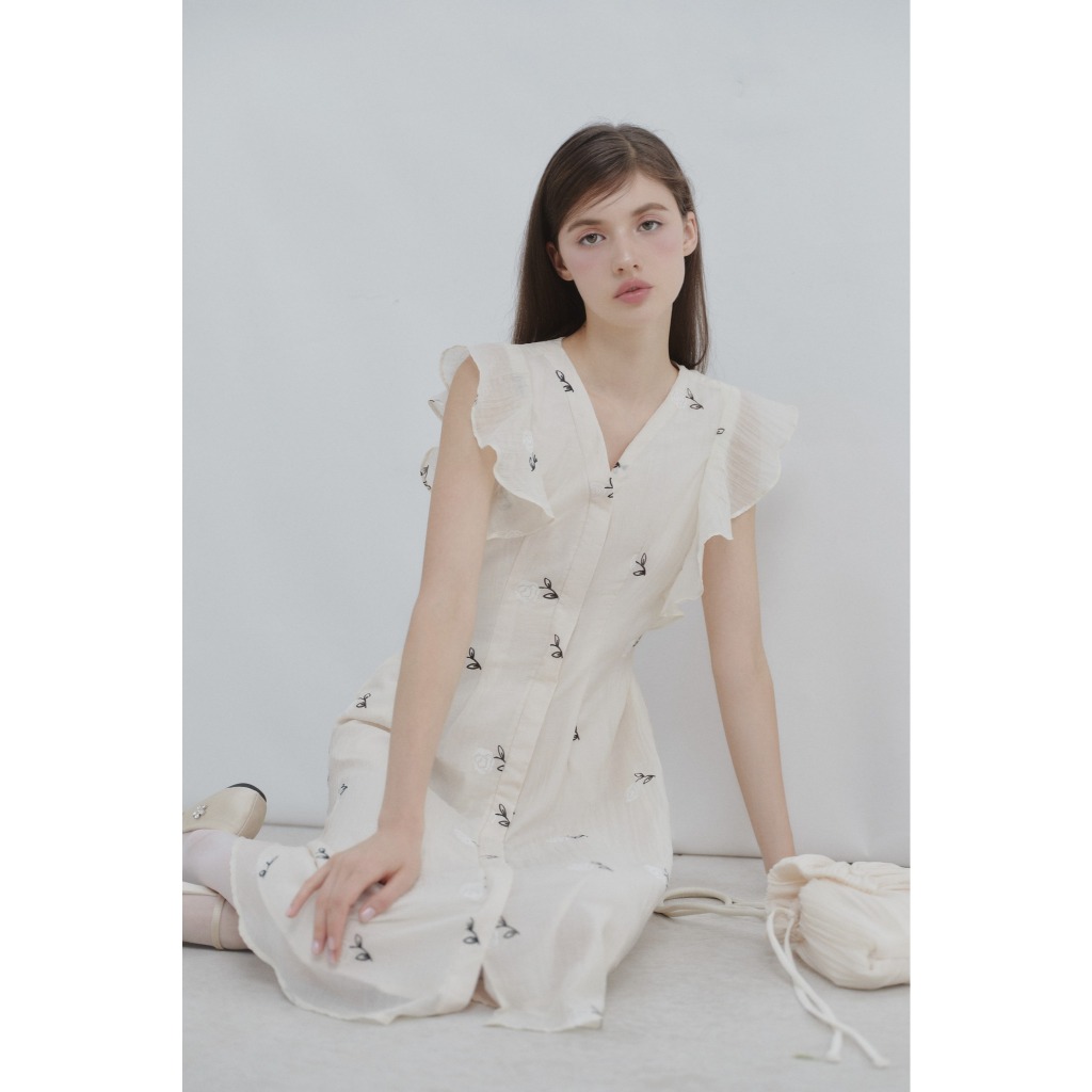 Đầm kiểu voan hoa tay cánh tiên cổ V Selby nhiều màu thanh lịch nữ tính OLV