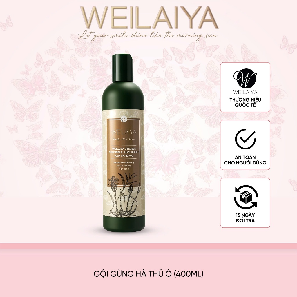 Dầu gội đầu thảo dược Weilaiya Zingiber Officinale Juice gừng hà thủ ô giúp dưỡng, đen và kích thích mọc tóc 400ml