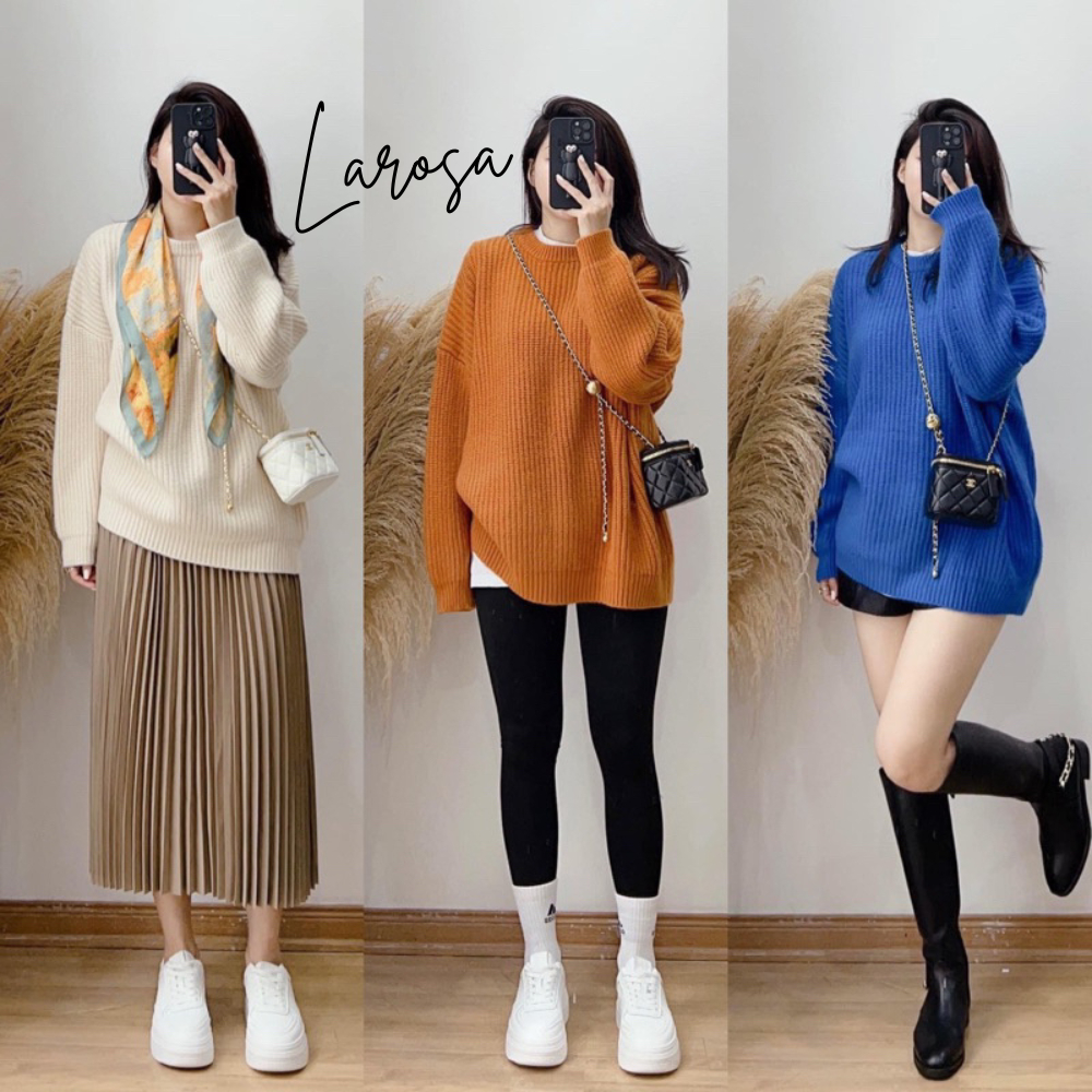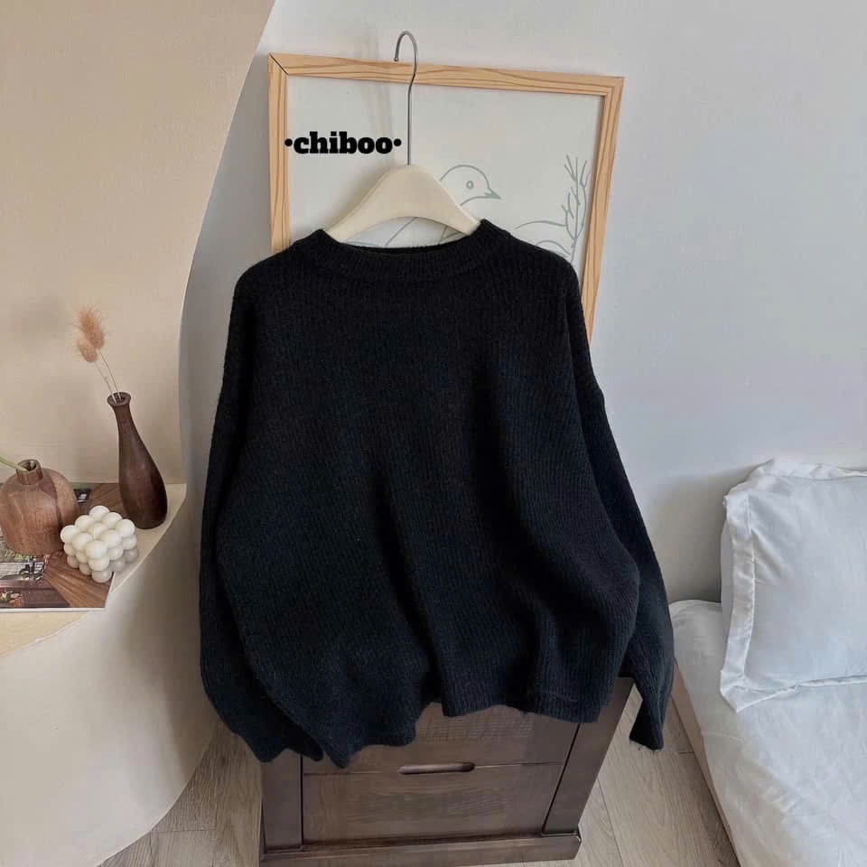Áo len dài tay , áo len form rộng basic cổ tròn màu trắng màu đen oversize vải len QCCC dày dặn phong cách hàn quốc