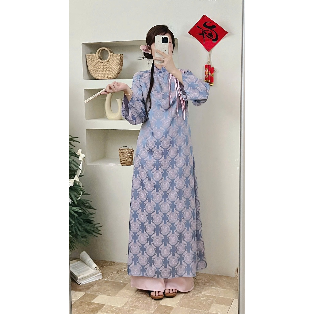 SET ÁO DÀI CÁCH TÂN GẤM LUẠ THỌ RƠI ĐÍNH NƠ TUA RUA KÈM QUẦN ÁO DÀI TẾT BÍNH NGỌ 2026 LỤA GẤM - DÀNH CHO NỮ