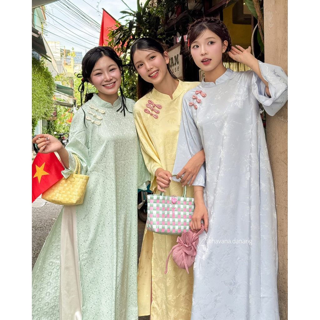 [N.T BIGSIZE] ÁO DÀI TẾT SUÔNG ĐÍNH 3 NƠ BIGSIZE
