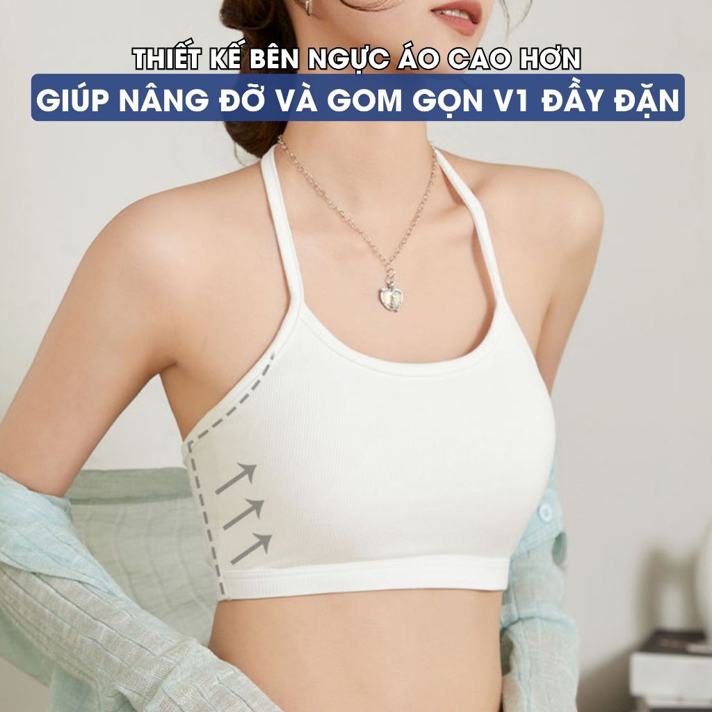 Áo Bra Nữ Cotton Mút Mỏng Thoáng Mát, Cổ Yếm Cột Nơ Thời Thượng HL BOUTIQUE B8703