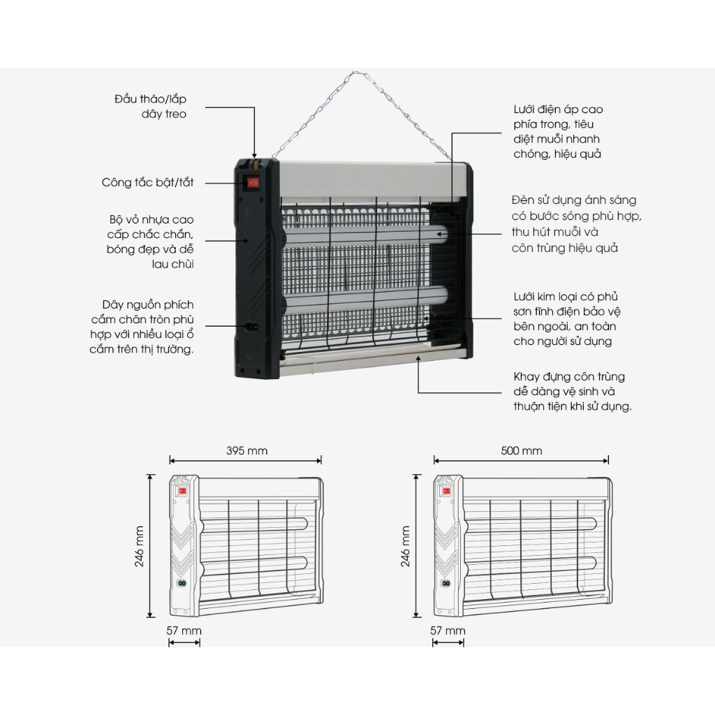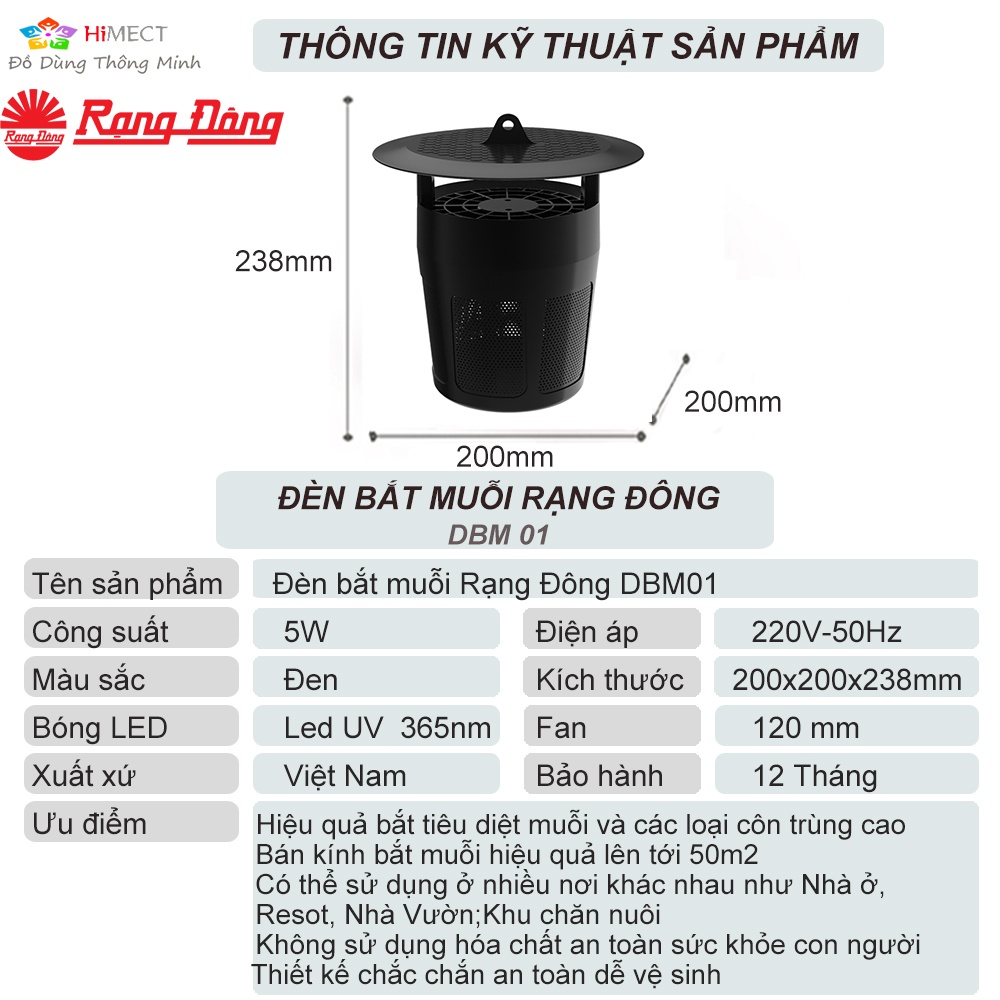 Đèn bắt muỗi Rạng Đông thông minh bắt côn trùng hiệu quả tiết kiệm điện không hóa chất, BH 1 năm-Himect