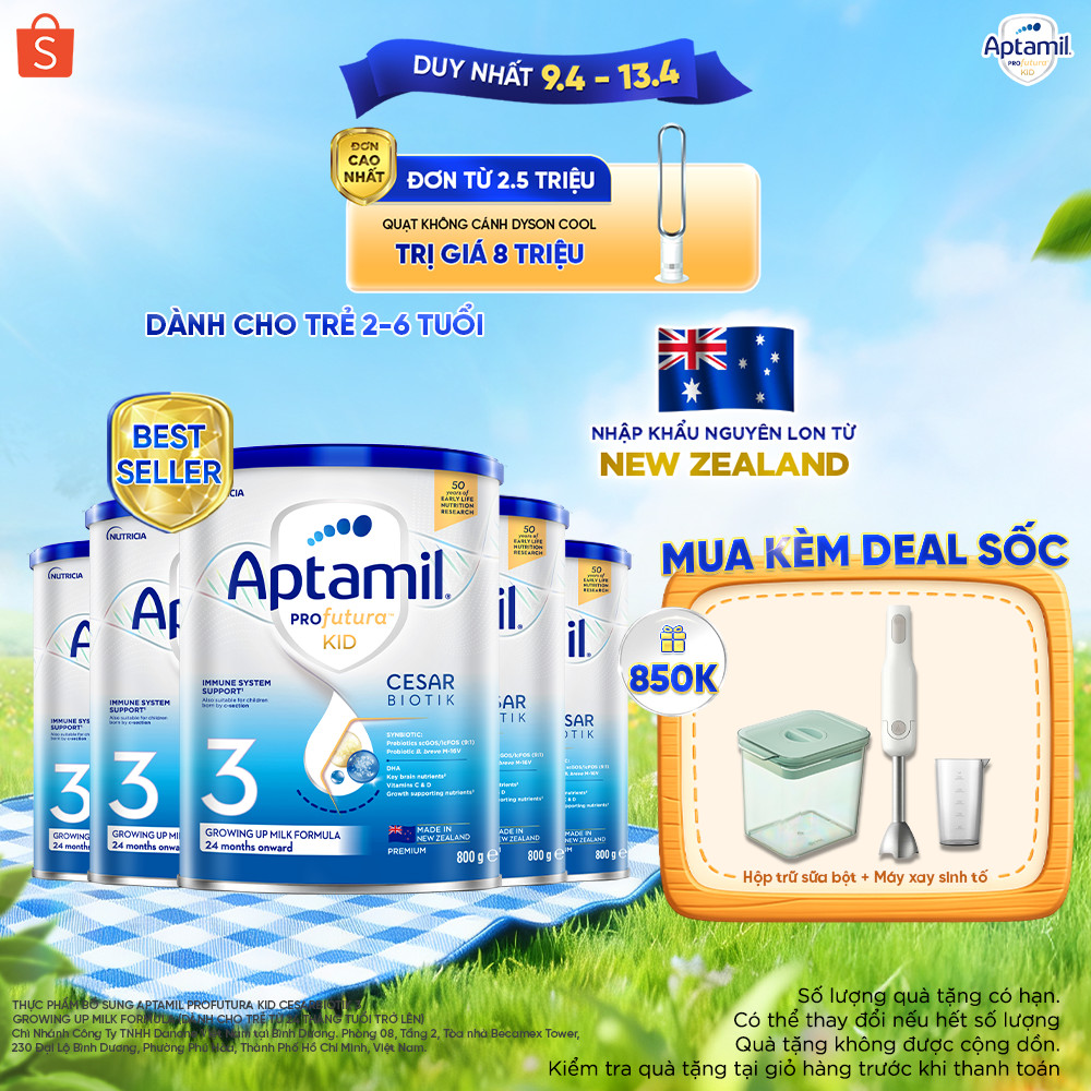 [MUA LÀ CÓ QUÀ] Combo 5 Sữa bột Aptamil Kid Cesarbiotik New Zealand số 3 (800g) cho bé 2-6 tuổi_LS