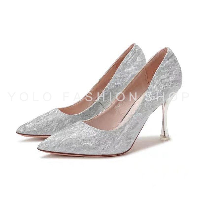 [FREESHIP] FORM RỘNG Giày cao gót dự tiệc 9cm mũi nhọn ánh kim đính nơ đá pha lê sang chảnh -TG2