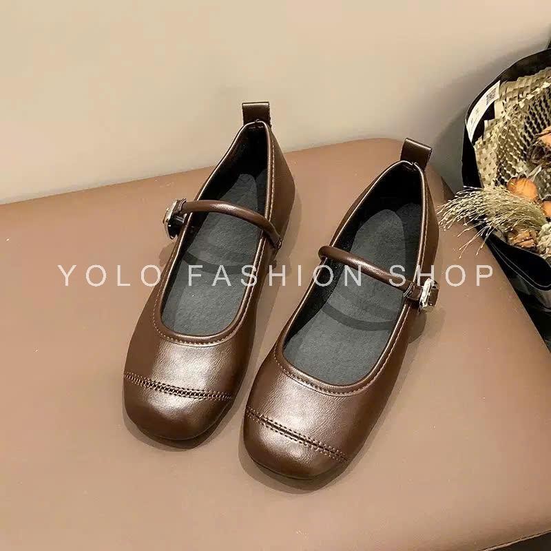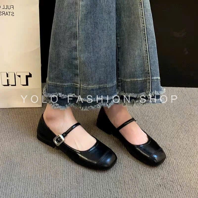 Giày Mary Jane khóa đơn cho nữ mùa xuân mới phong cách Hàn Quốc mũi vuông đế mềm màu Bạc màu Đen nữ - B52