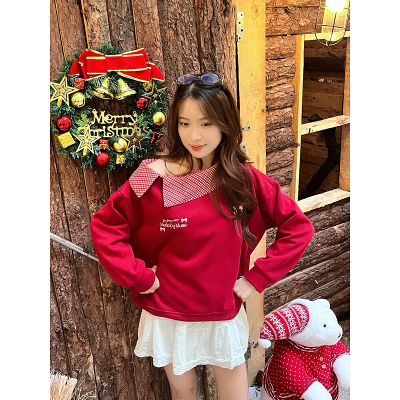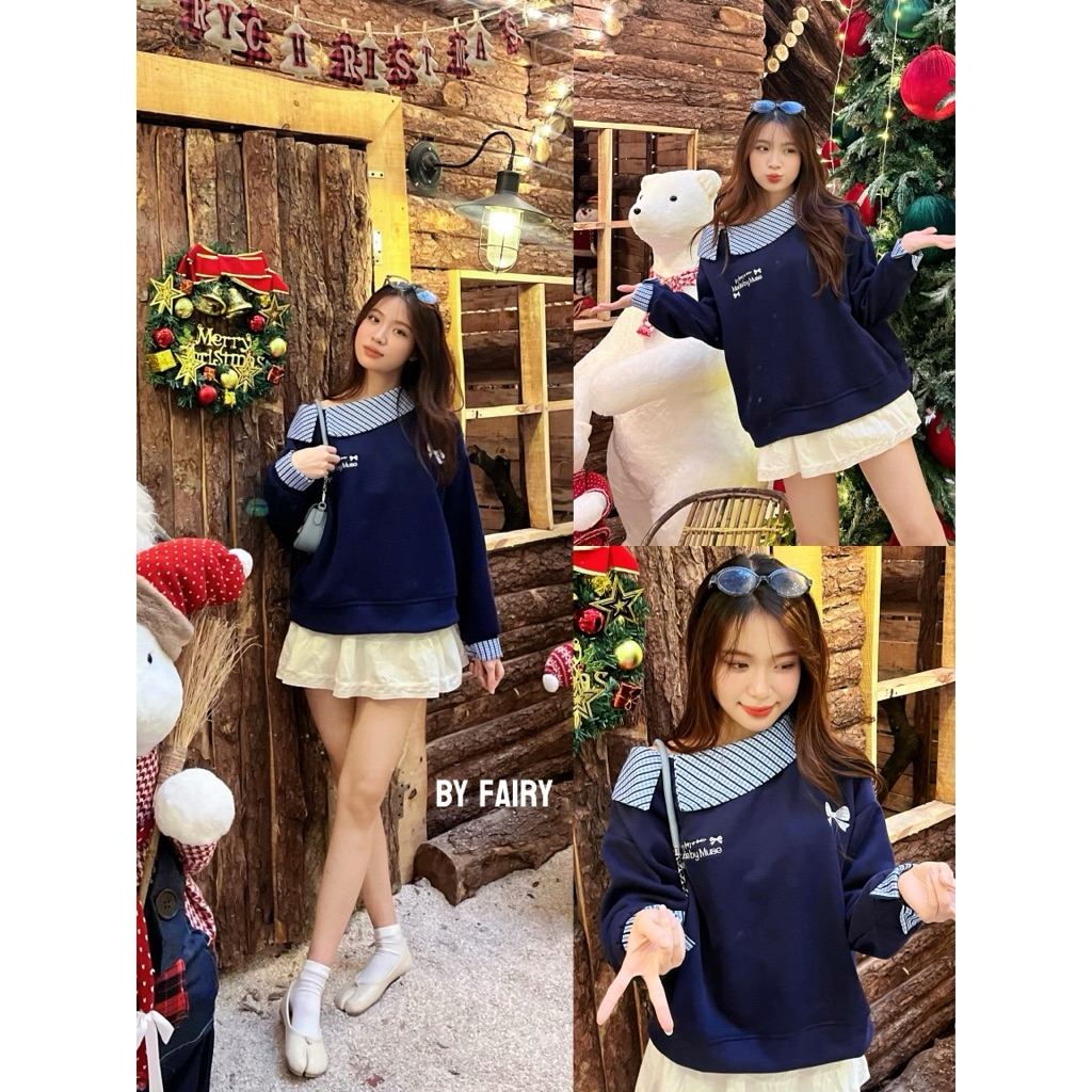 [XẢ KHO RẺ] Áo Sweater phối kẻ lệch vai nỉ 2 da không xù lông - BY FAIRY
