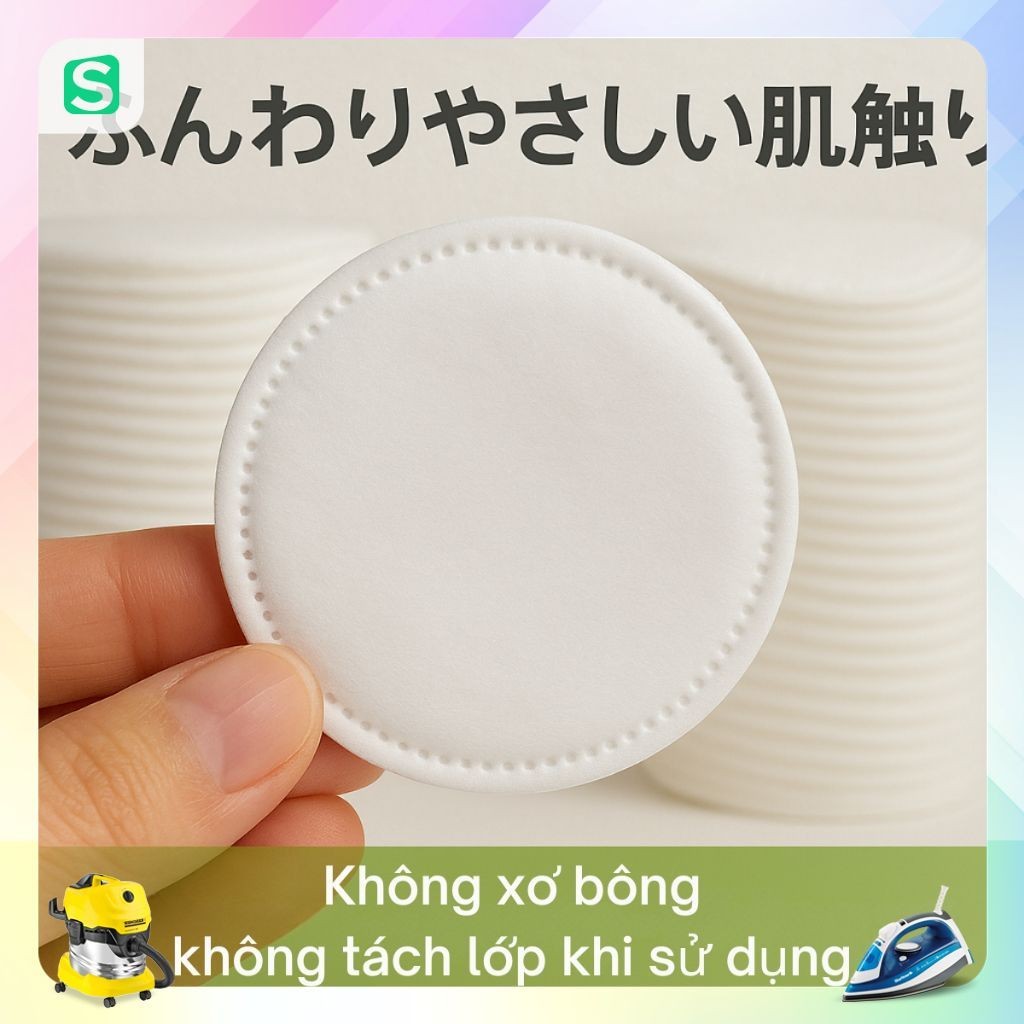 Bông tẩy trang MNS Nhật Bản 100% Cotton, Bông tẩy trang 180 miếng mềm mịn.