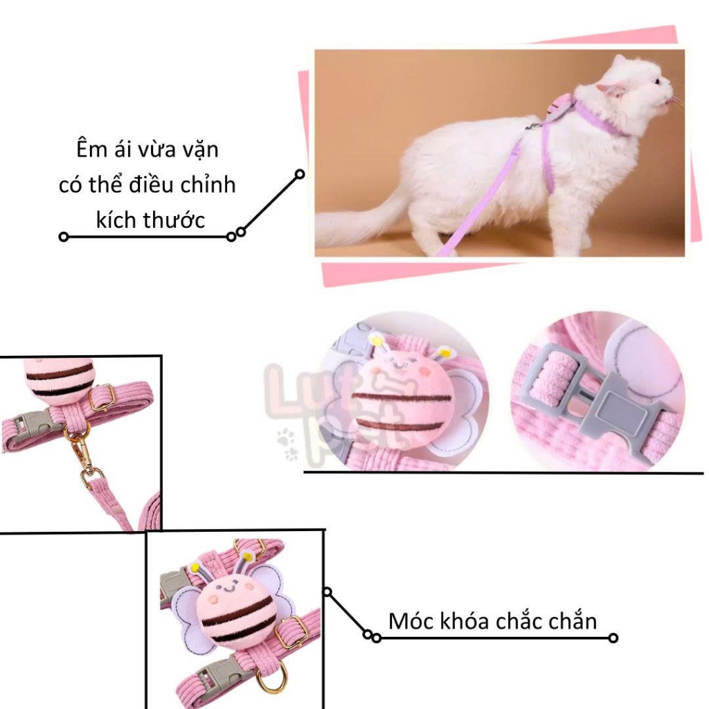 Dây Dắt Cho Chó Mèo Hình Ong Cute, Ngộ Nghĩnh, Dây Dắt Yếm Cho Thú Cưng - Lutpet